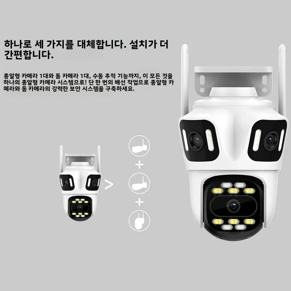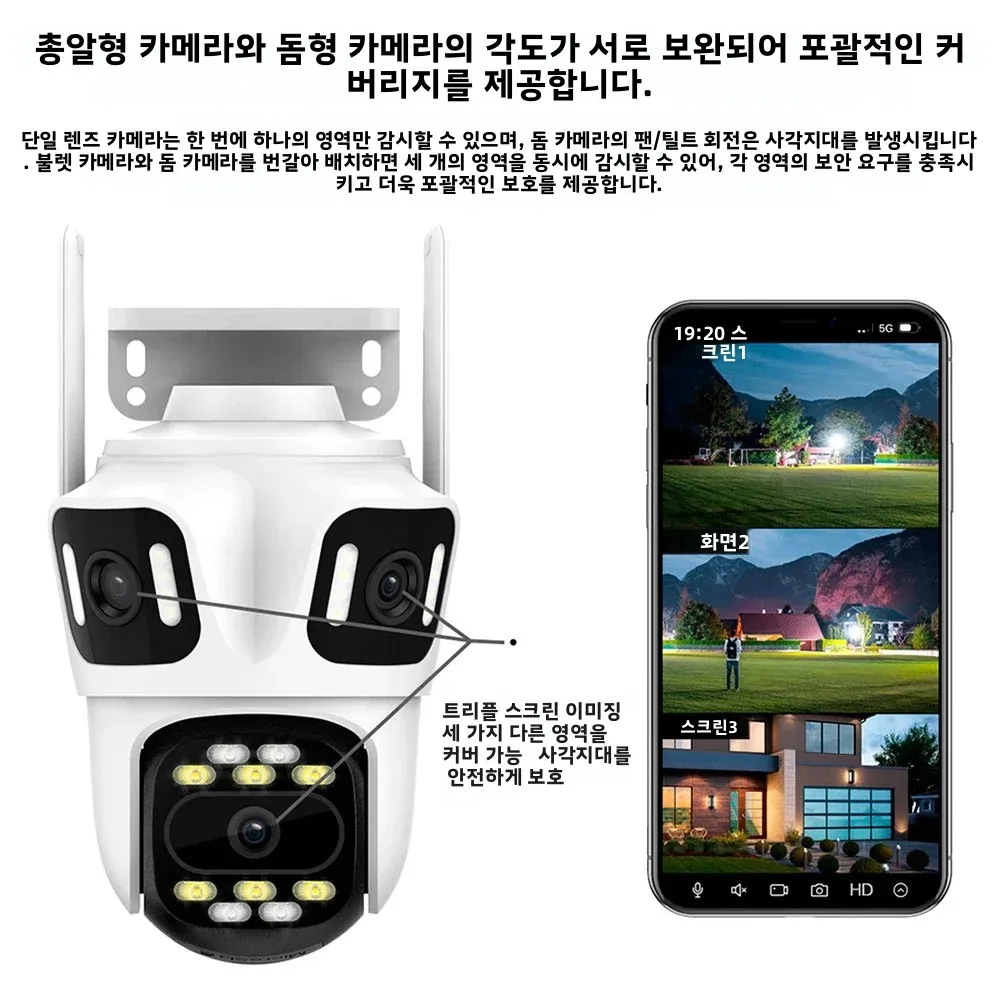 트리플 렌즈 카메라가 장착된 이 CCTV는 포괄적인 시야를 제공하여 어떤 각도도 놓치지 않습니다.