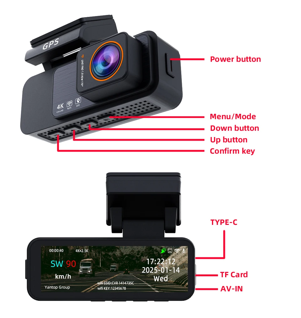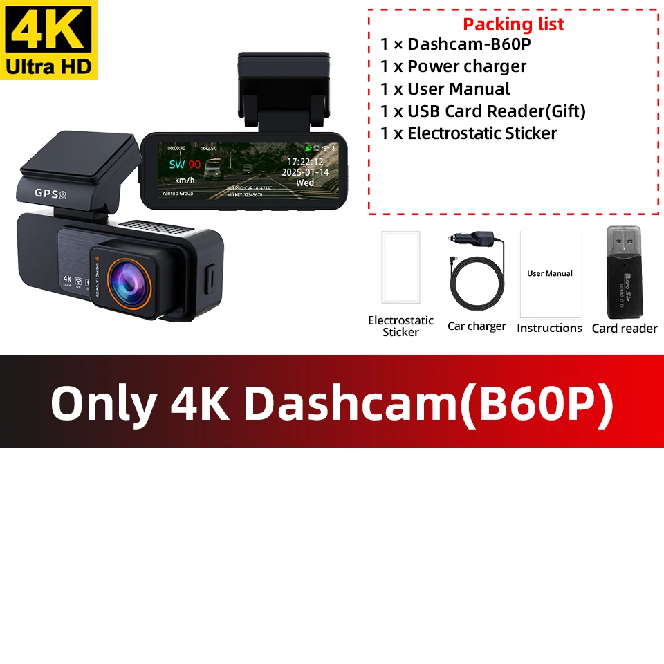 당사의 차량용 DVR은 4K 비디오 녹화기로 고품질 Class 10 TF 카드를 사용해야 합니다. 저품질/저속 TF 카드는 당사 DVR의 정상 작동을 지원하지 않습니다. 적합한 TF 카드가 확실하지 않다면 당사 정품 TF 카드를 함께 구매해 주십시오.