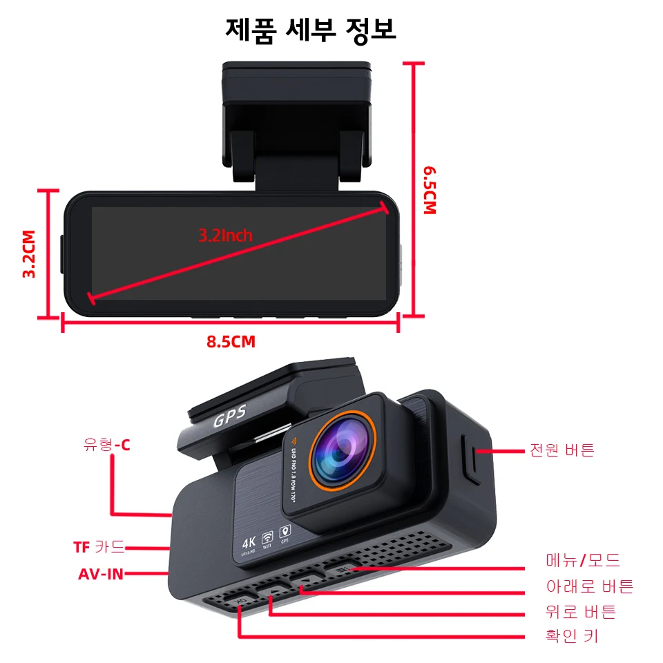 ➤비디오 해상도(전면): 3840*2160P@30FPS