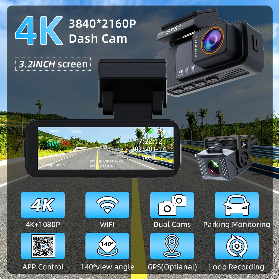 ➤후방 카메라 업그레이드: 최대 15미터 케이블 지원 후방 카메라 ➤추가 기능: 야간 투시, 3840x2160P 전면 카메라, 4K 비디오 해상도, WiFi, 내장 GPS 추적