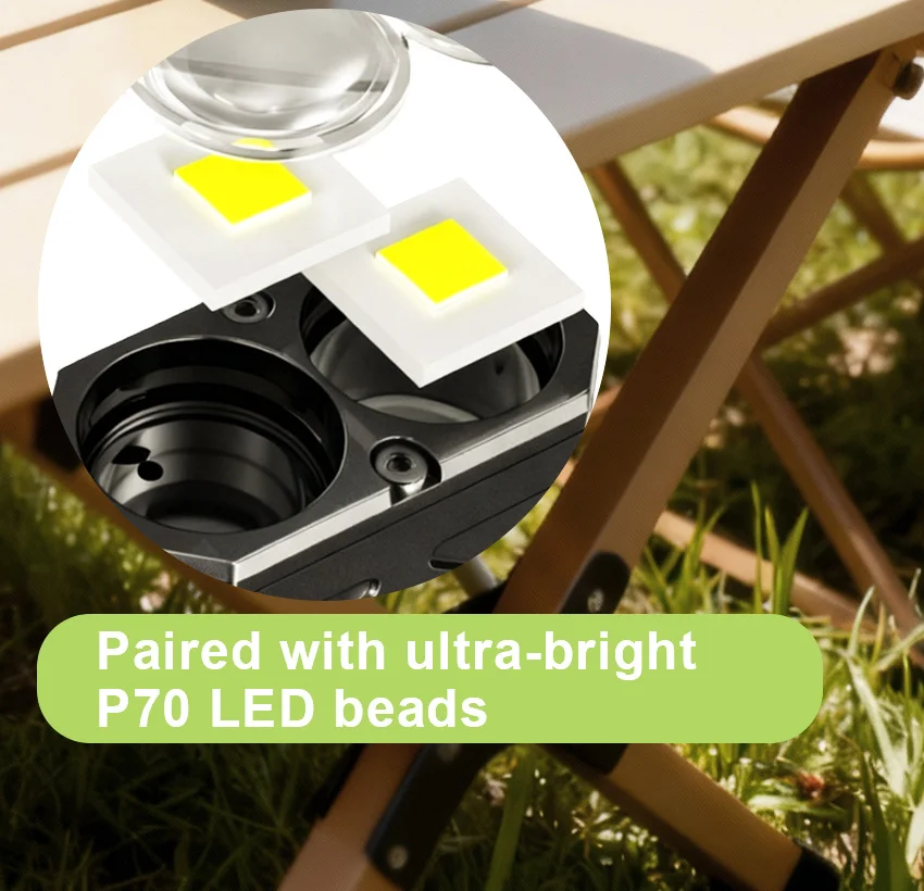 매우 밝은 조명: 2 * P70 LED 비드가 장착되어 어두운 환경에서도 선명한 가시성을 위한 강력한 투과력을 제공합니다.