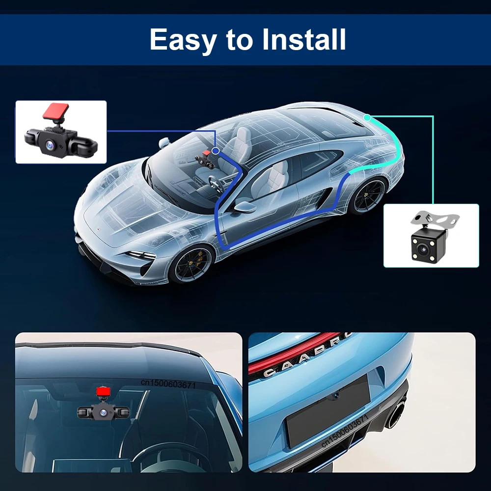 【간편한 설치】흡착컵을 이용해 대시캠을 앞유리에 장착하고, 포함된 프라이 도구로 배선을 숨기고, 후방 카메라를 부착하세요.