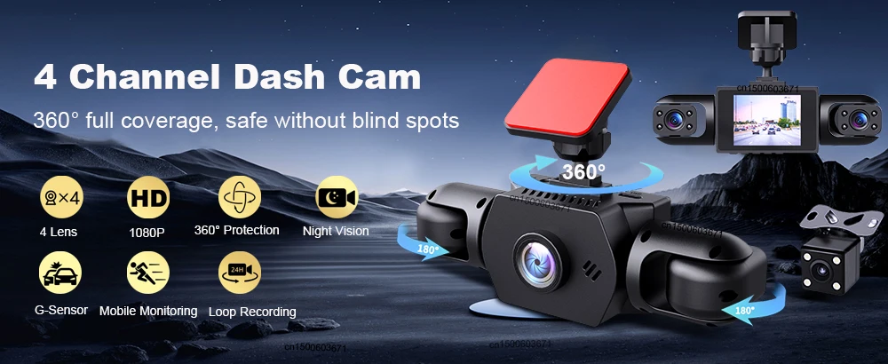 【4채널 360° 파노라마 뷰】이 블랙박스는 4개의 내장 카메라를 탑재하여 전면, 후면, 좌측, 우측에서 동시에 다각도 이미지를 촬영할 수 있습니다. 좌우 카메라는 180° 회전이 가능하여 측면 창을 통해 실시간으로 녹화할 수 있으며, 차량 주변의 사각지대를 없애는 360° 전방위 시야를 제공합니다. 복잡한 교통 환경에서 측면 충돌, 차선 변경, 주차 사고를 기록하는 데 이상적입니다.