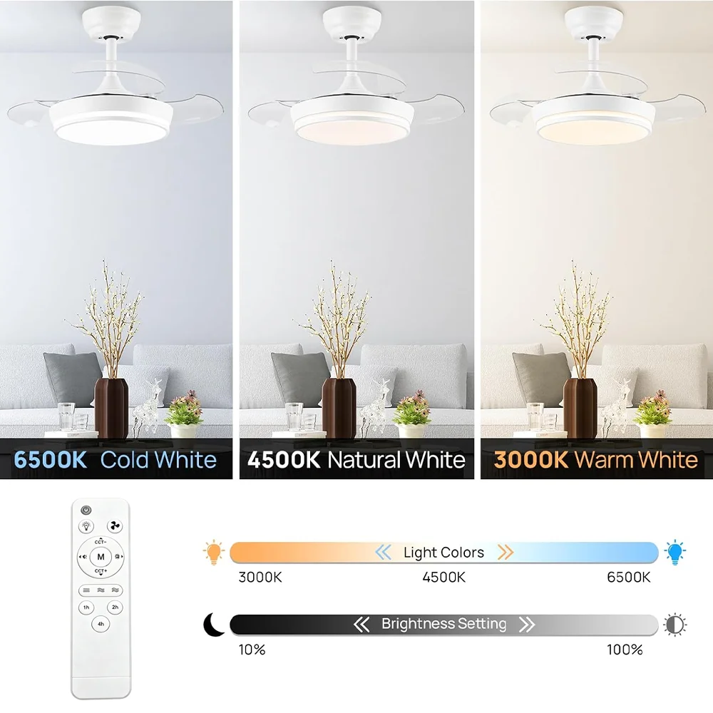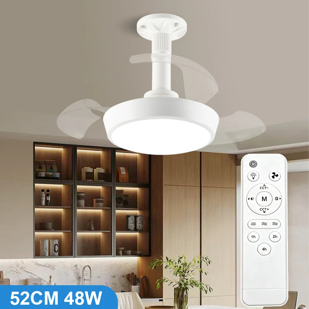 2 in 1 E27 천장 선풍기 조명, 리모컨 포함, 3색 3단 풍속 조절, 디밍 가능, 타이머 기능, 거실용