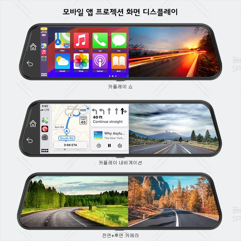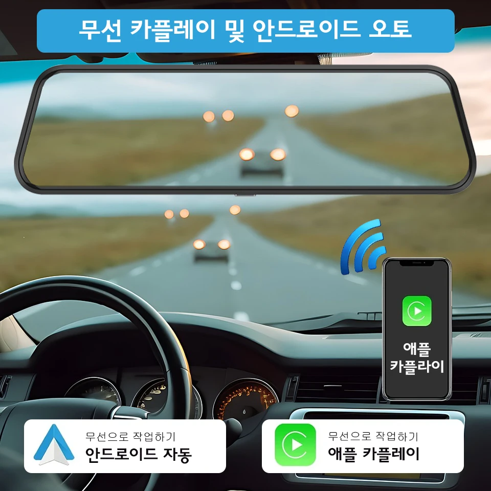 10인치 4K 미러 대시캠, 무선 카플레이 & 안드로이드 오토 지원, WIFI GPS 내비게이션, 듀얼 렌즈 비디오 레코더 차량용 DVR