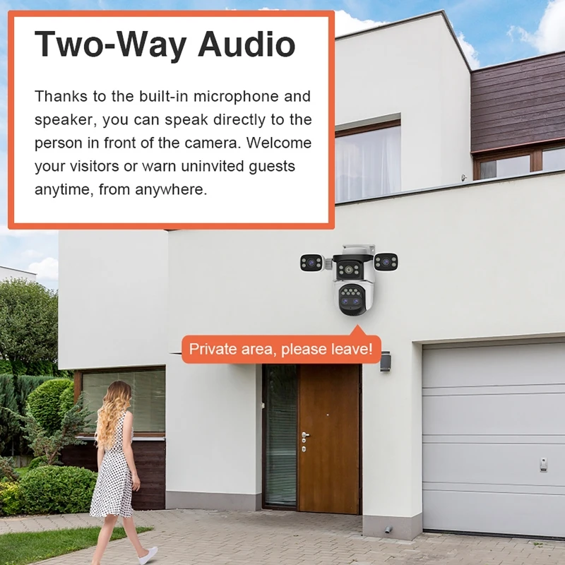 ***양방향 오디오 카메라: 내장 마이크 및 스피커, 라이브 비디오 지원, 어디에 있든 실시간으로 방문자와 대화할 수 있습니다.