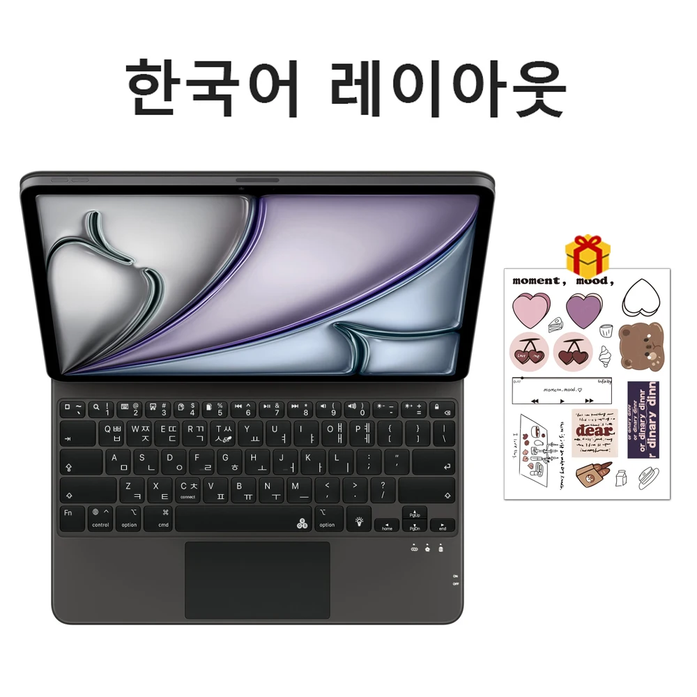 이 새로운 타입의 매직 키보드는 iPad 보호 케이스와 터치패드를 함께 제공합니다. 다국어 옵션은 사용에 편리함을 더해줍니다.