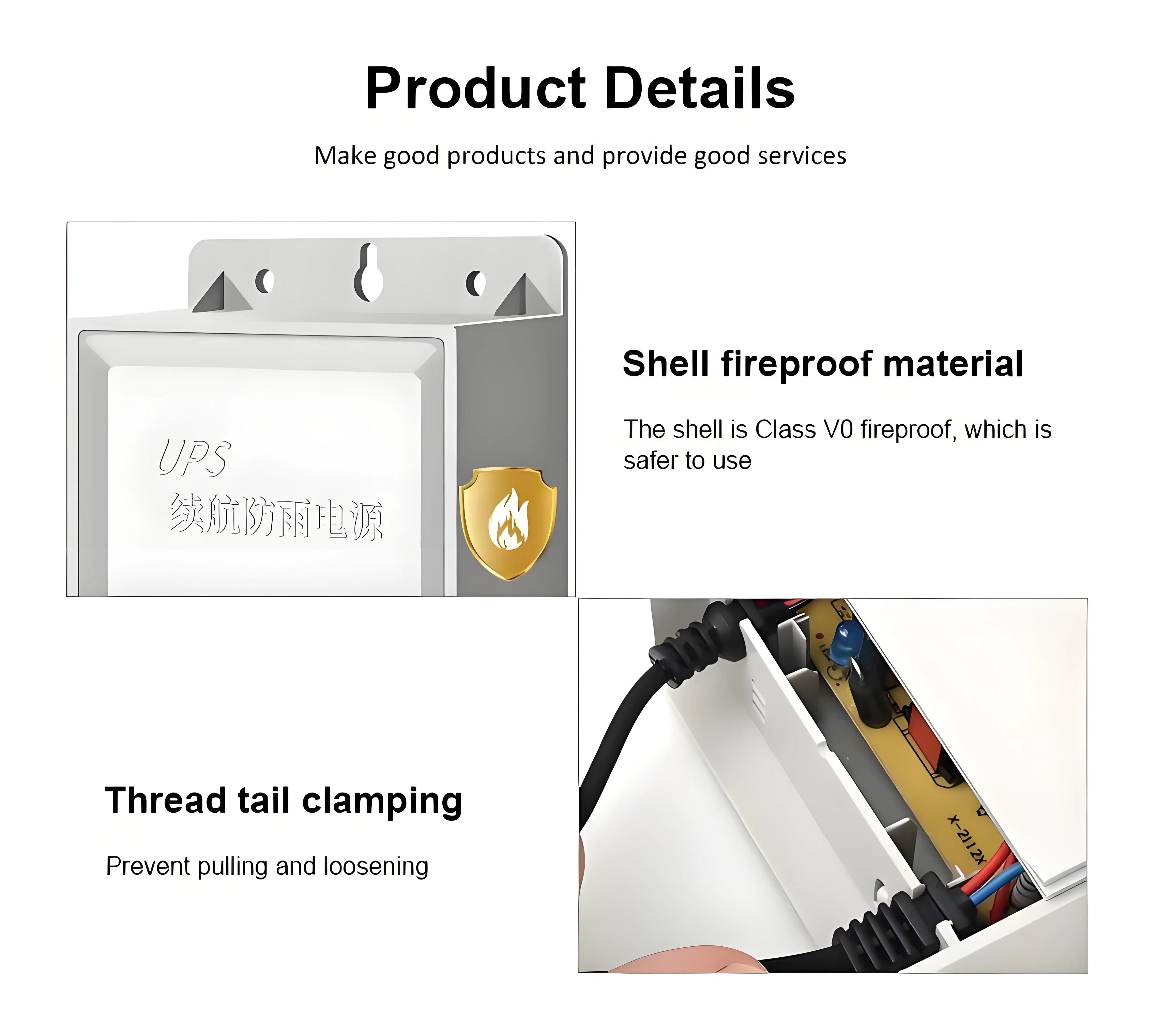 UPS에는 배터리(포함되지 않음)가 있으며, 전원 공급 장치를 전환하기 위해 별도의 조작이 필요하지 않습니다. 정전 후에도 계속 작동하며, 전원이 공급되면 자동으로 충전 모드로 전환됩니다. 복잡한 조작이 필요하지 않습니다.