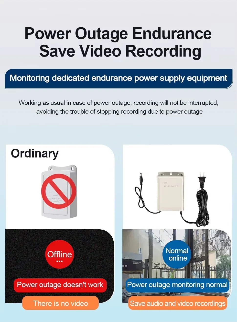 전원이 차단되면 내장 배터리(포함되지 않음)에 전원을 공급하여 카메라를 최대 24시간 동안 작동시킬 수 있으므로 악당이 이를 악용할 수 있는 기회를 놓치지 마십시오!