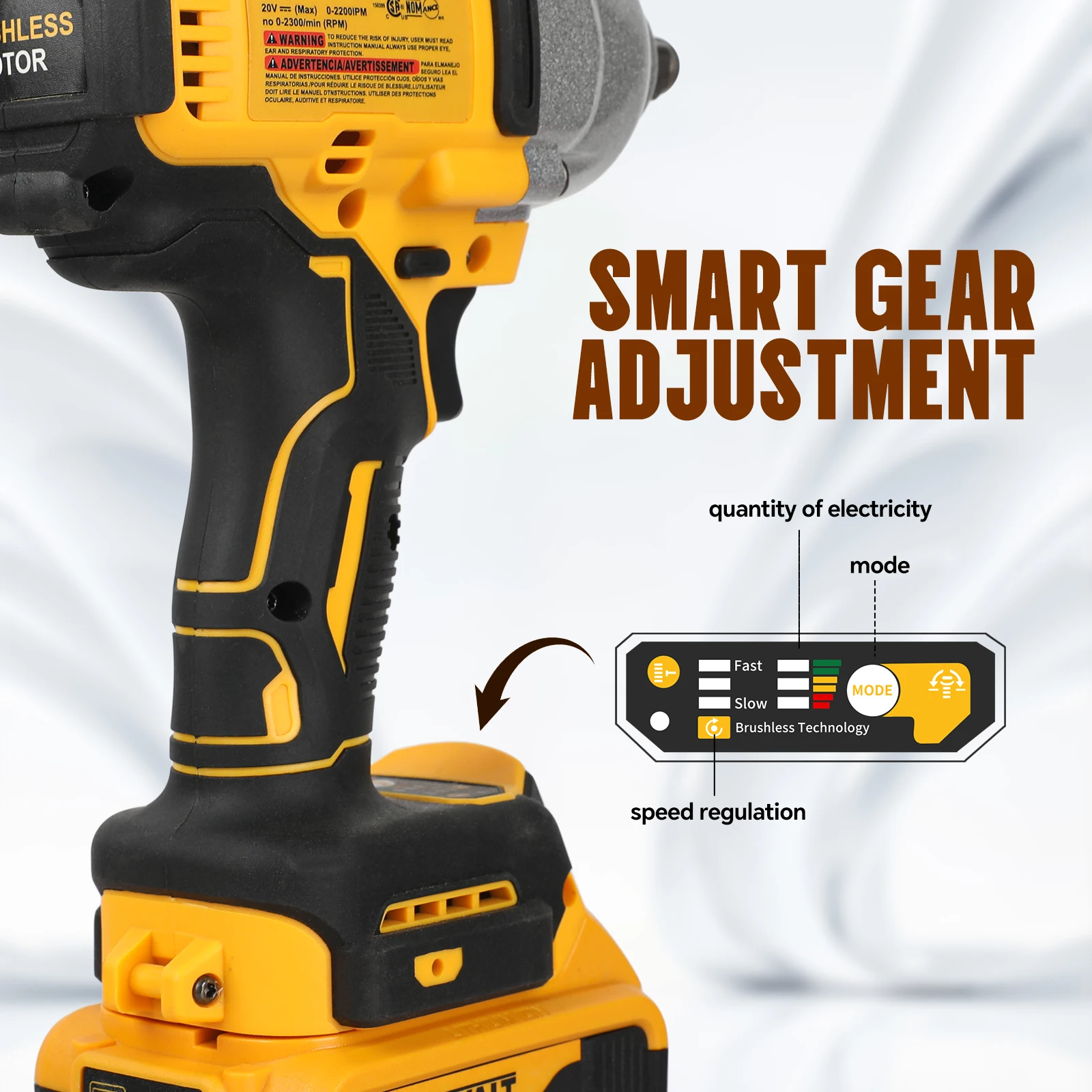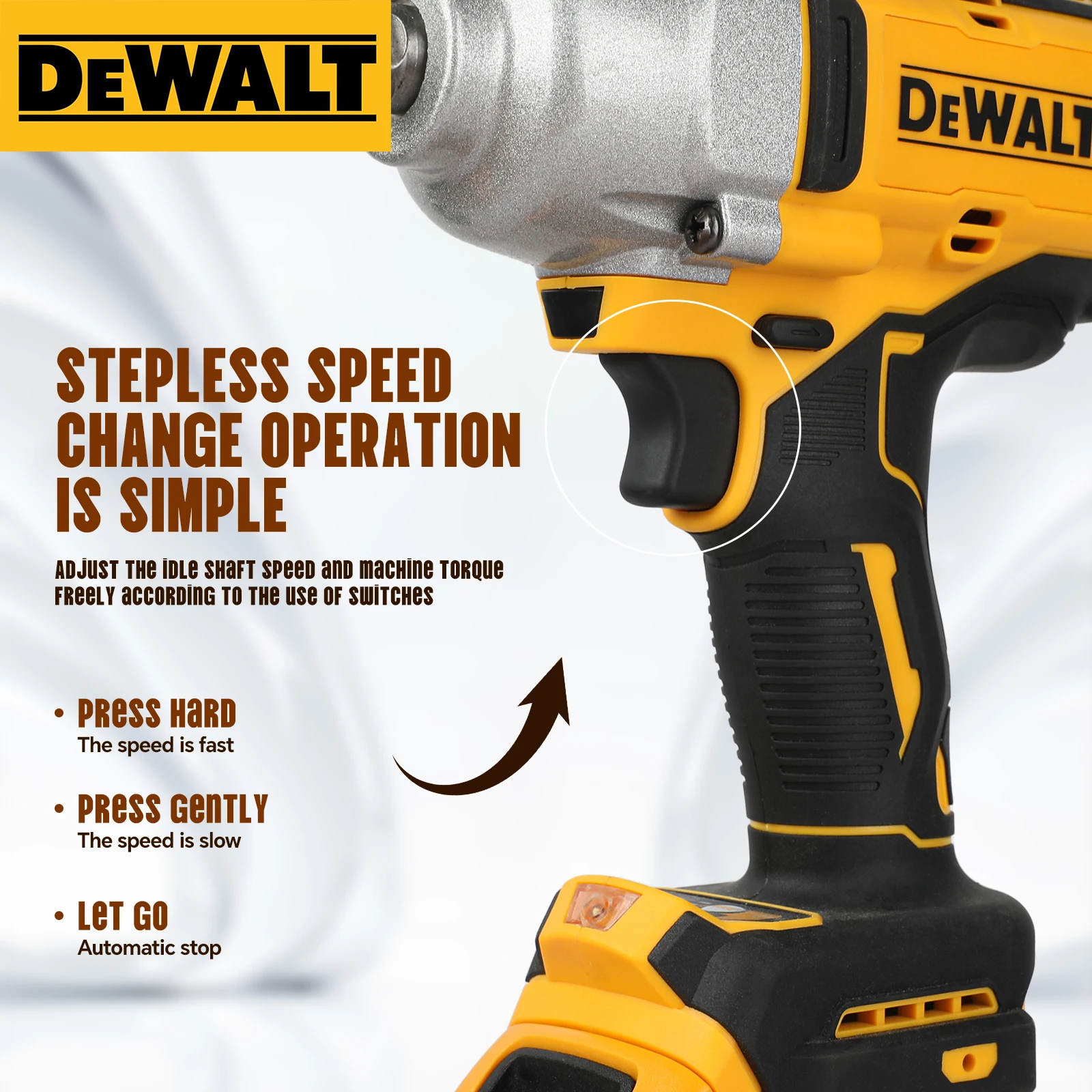 DEWALT DCF900 20V 브러시리스 무선 1/2인치 임팩트 렌치, 고토크 3단 속도 조절, 공압 타이어 제거용