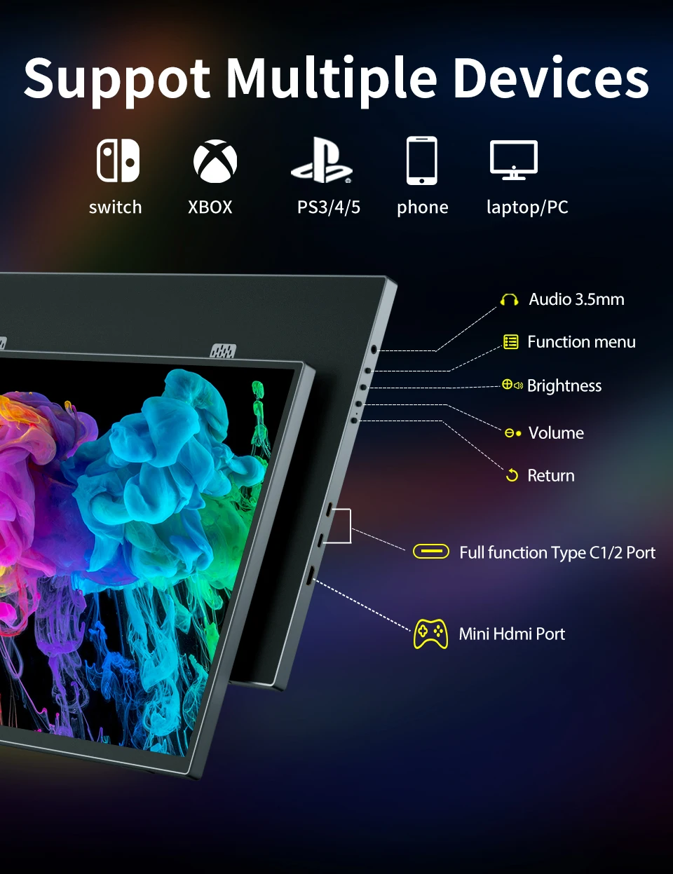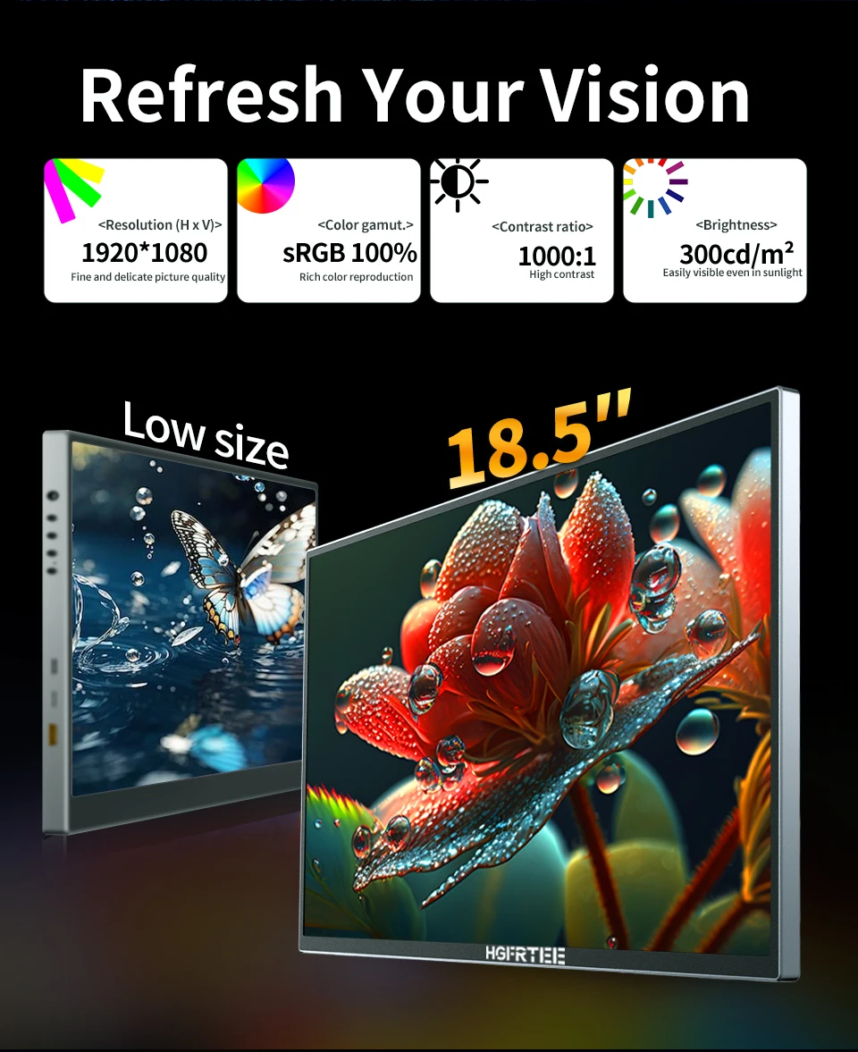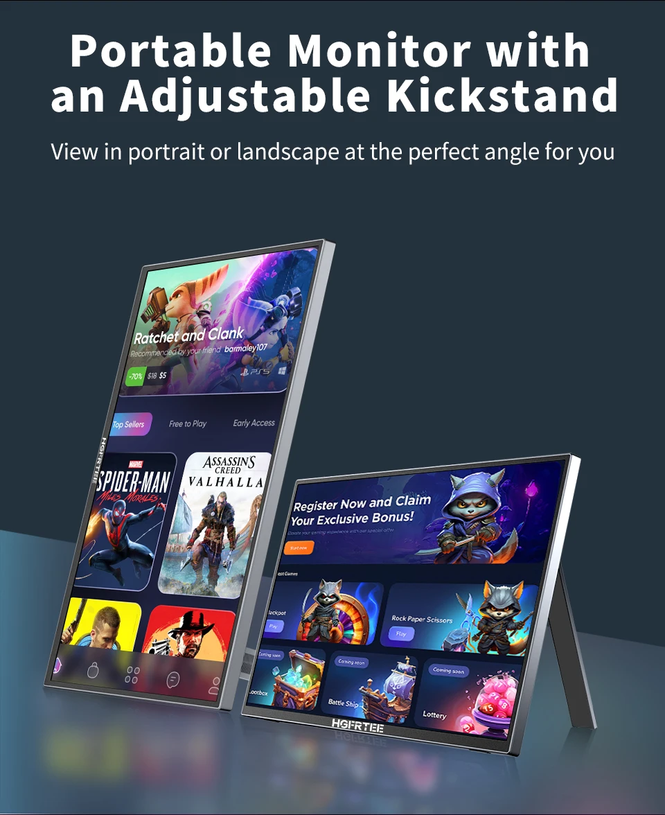 길이가 단 18.5인치에 불과한 이 휴대용 모니터는 휴대가 간편하여 이동 중인 게이머들에게 이상적입니다.