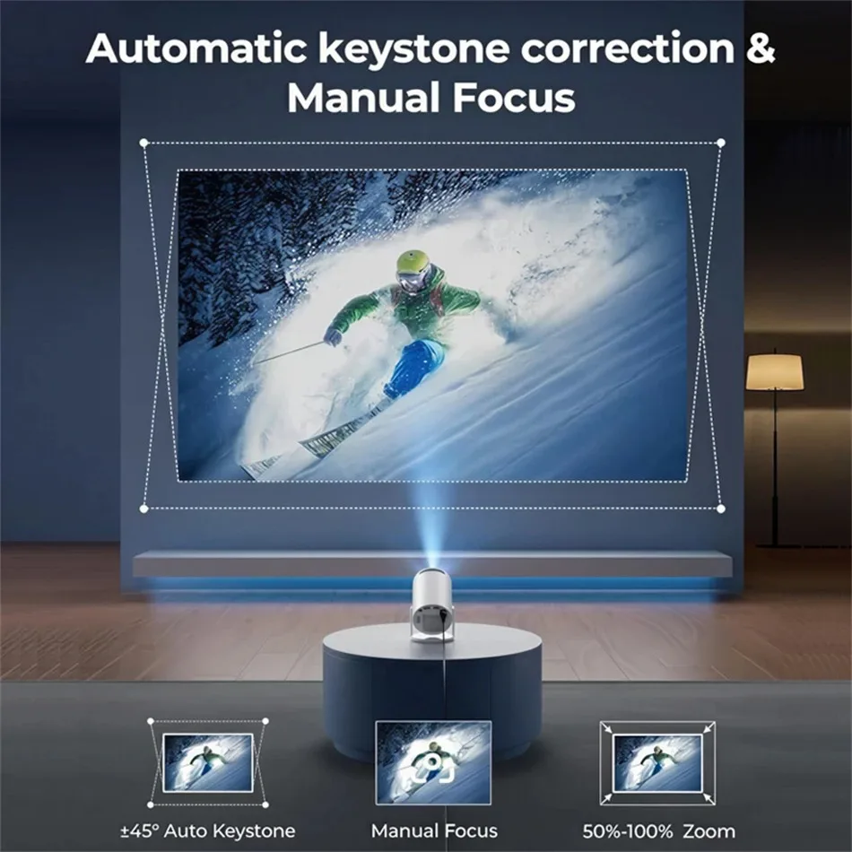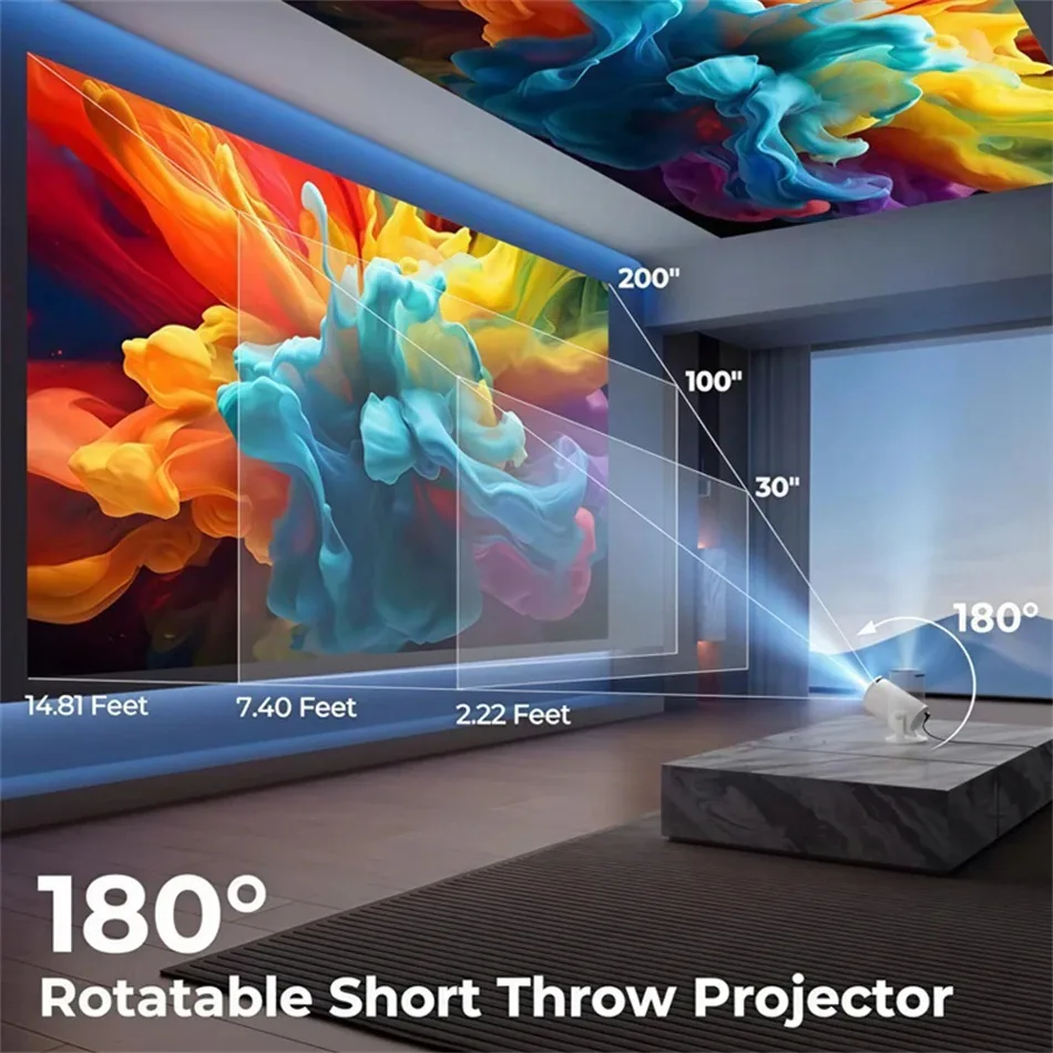미니 프로젝터 4K 1080P 지원 듀얼 밴드 WIFI6 5G 무선 안드로이드 14 290 ANSI 180° 회전 가능 비디오 HY300 NEW 2026CPU:올위너 H726 쿼드코어 ARM Cortex-A53