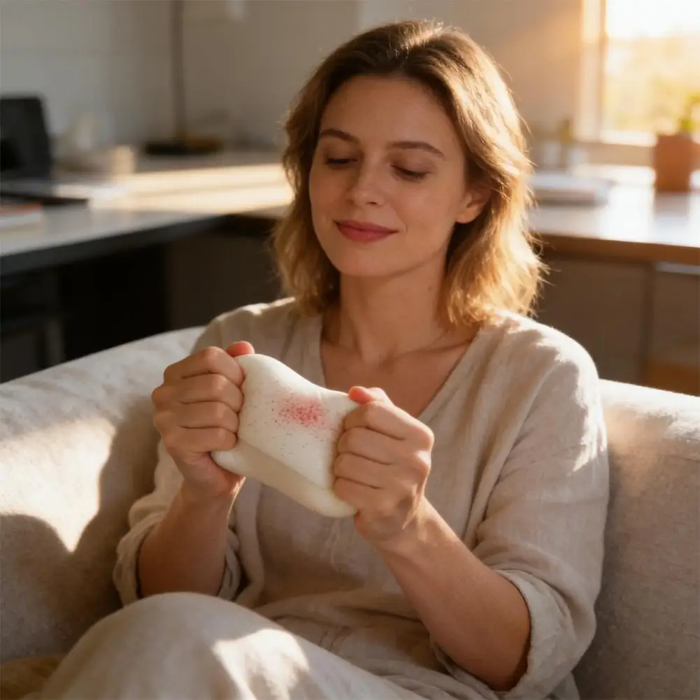 3. 부드러운 압축: 놀랍도록 부드럽고 만족스러운 느린 복원 텍스처를 즐겨보세요. 부드럽게 눌러주면 천천히 원래 모양으로 돌아오는 모습을 지켜볼 수 있으며, 이는 편안함과 집중력을 높여주는 완벽한 순간을 제공합니다.