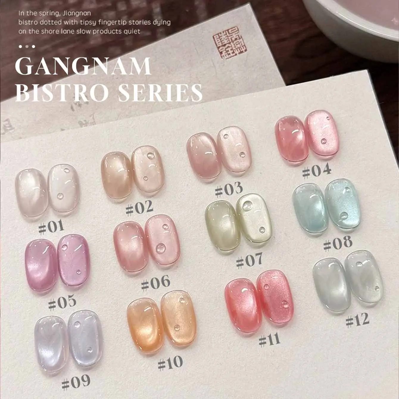 MIANEL 1-12pcs 12ML 뜨거운 판매 장강 고양이 눈 젤 매니큐어 아이스 투명 유리 구슬 매니큐어 핑크 네일 블루 네일