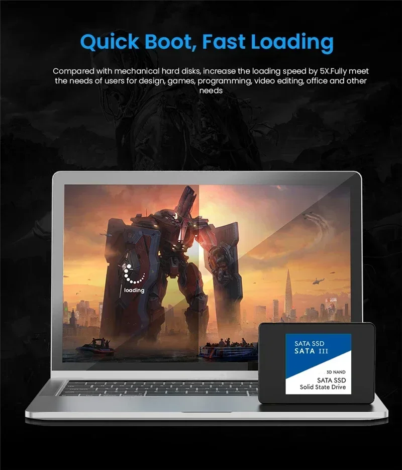 3. 저전력으로 작동할 수 있으며, 낮은 열을 발생시키고, 적은 전력을 소비하며, 조용히 작동합니다. 또한 충격 저항 및 내충격 성능을 갖추고 있어 다양한 가혹한 환경을 견딜 수 있습니다. 이는 노트북과 같은 이동형 스토리지 컴퓨팅 장치에 매우 적합합니다.