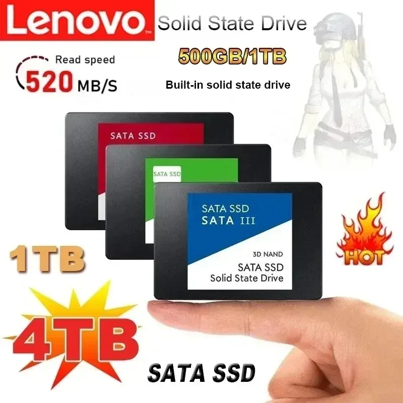 레노버 4TB SSD 외장 하드 디스크 (내장 하드 드라이브용), SATA3 인터페이스, 휴대용 고속 솔리드 스테이트 드라이브 (노트북용)
