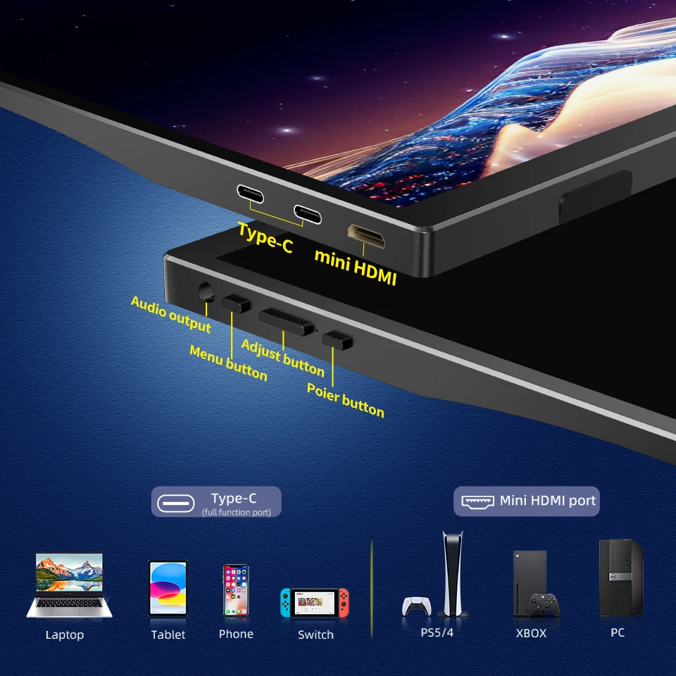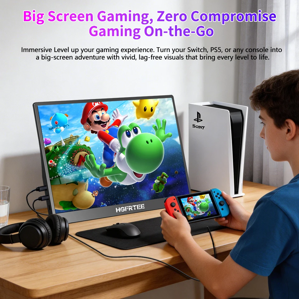 USB-C와 미니 HDMI를 사용하여 다양한 기기에 연결하세요. Windows, MacBook, Switch, Xbox, PS4와 호환됩니다.