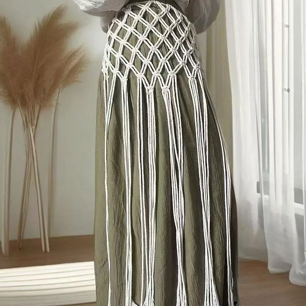 1. 【독창적인 장인 디자인】: 정교하게 손으로 짠 태슬 허리 벨트로 당신의 스타일을 한층 돋보이게 하세요. 독특한 마크라메 패턴과 흐르는 듯한 프린지가 특징이며, 어떤 룩에도 개성을 더해주는 매력적인 액세서리입니다.