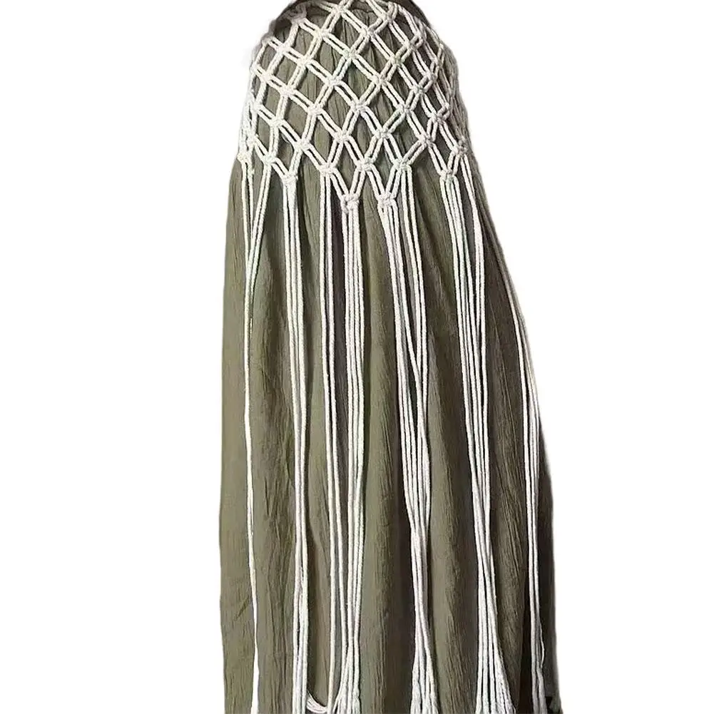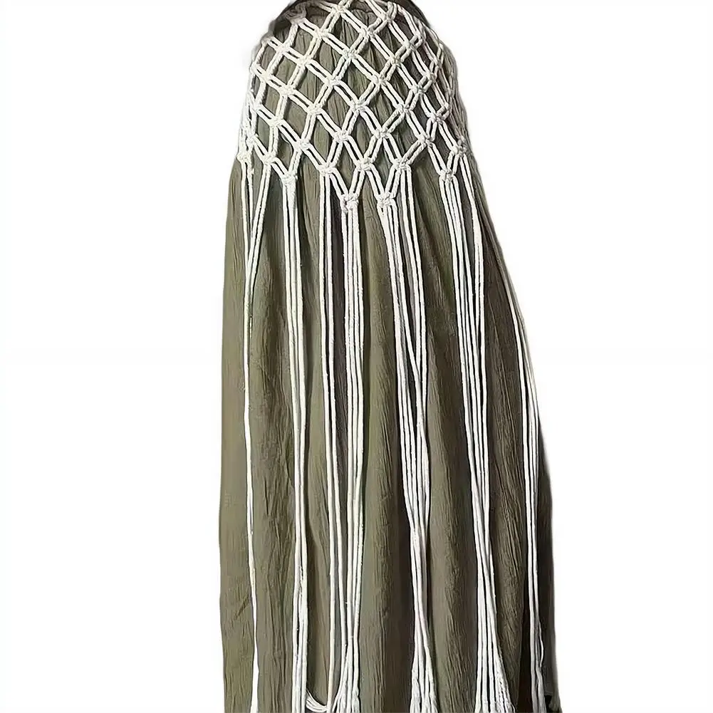 2. 【고급 소재 및 치수】: 고품질 꼬임 로프로 제작되어 착용감이 편안합니다. 전체 길이는 약 150cm(59인치)이며, 주요 꼬임 부분의 폭은 약 40cm(15.7인치), 우아한 프린지는 약 80cm(31.5인치)까지 늘어납니다. 수공예 특성상 치수에 1-2cm(0.4-0.8인치) 정도의 약간의 오차가 있을 수 있습니다.