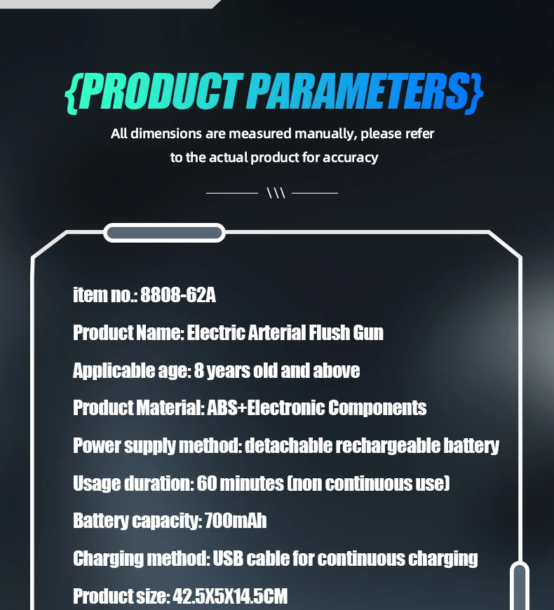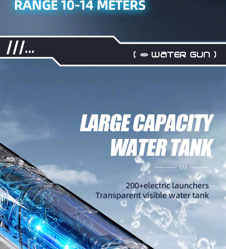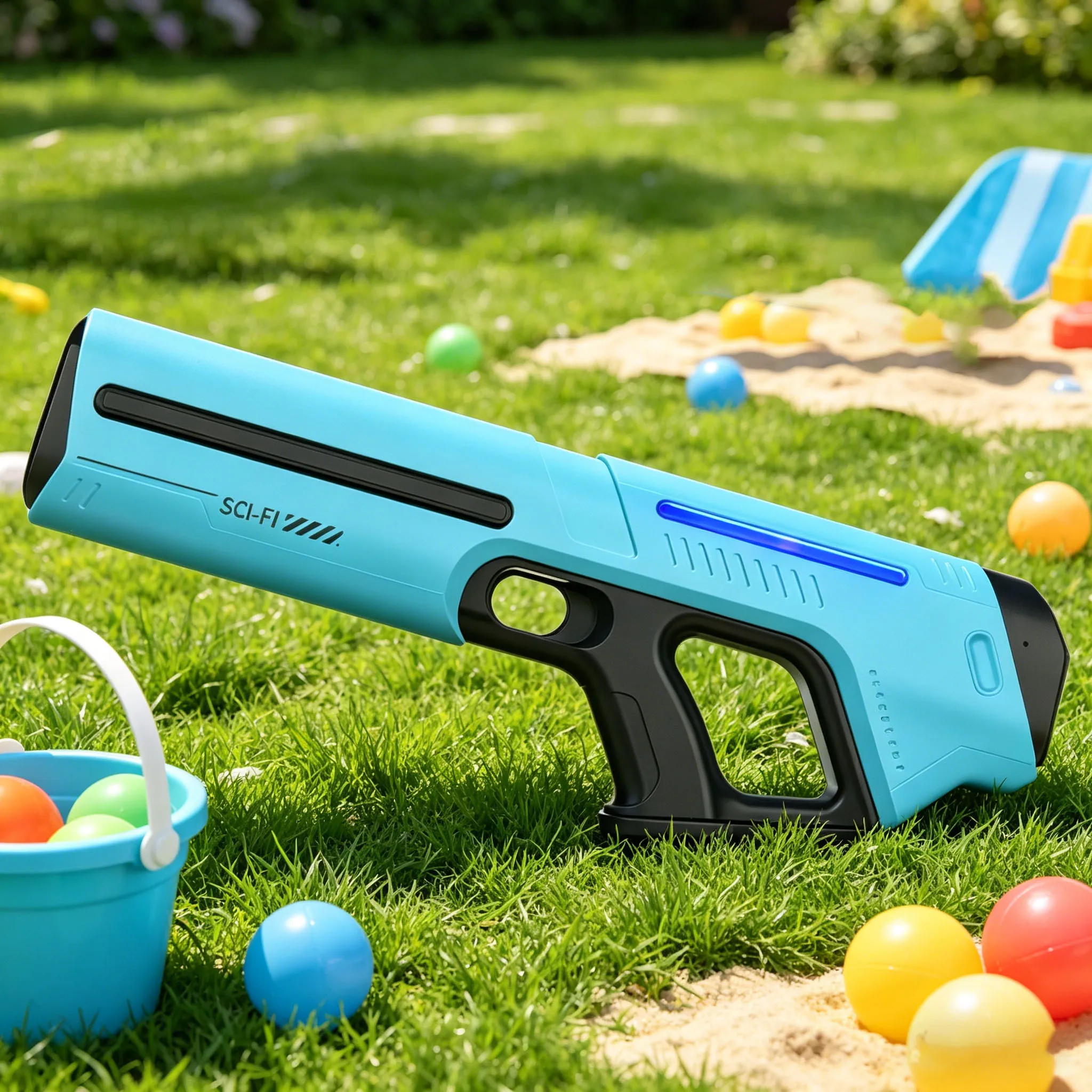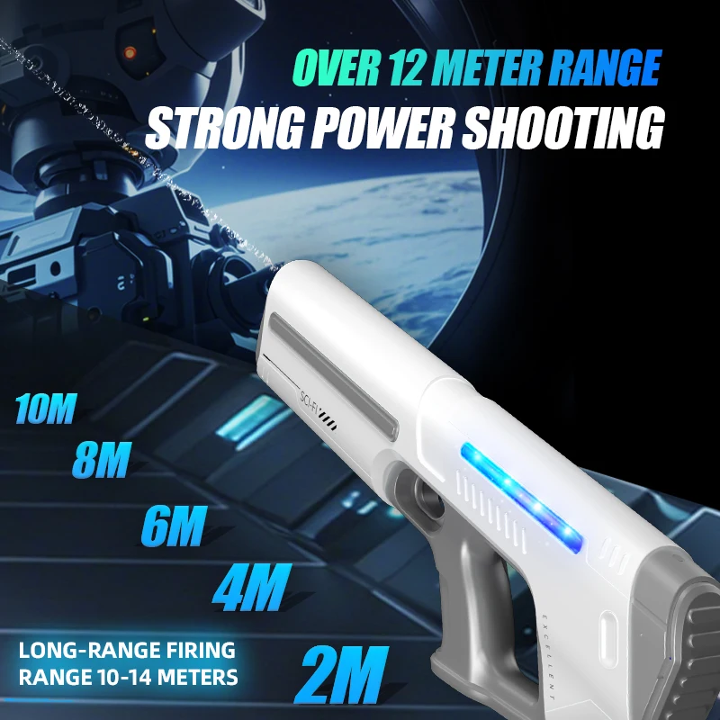 궁극의 여름 물총 기술! 펄스 전자광학 물총을 소개합니다. 내장된 멋진 조명 효과로 주간에는 스타일리시하고 야간에는 더욱 화려합니다. 전기식 고압 펄스 제트 시스템을 탑재해 길게 눌러 연속 발사하거나 단발로 정밀 사격이 가능하며 사거리 8–10미터로 전장을 장악합니다. 자동 물 흡입 기능으로 노즐이 물에 닿으면 즉시 재급수되어 수동 보충의 번거로움을 없앱니다. 대용량 물탱크로 한 번 채우면 끊김 없이 즐길 수 있습니다. 수동/자동 듀얼 모드로 배터리가 방전된 경우에도 수동 사격이 가능해 놀이가 중단되지 않습니다. 전체 유닛은 방수 및 내충격 설계로 매끄럽고 친환경적인 ABS 소재로 제작되어 성인과 어린이 모두 안전하게 사용할 수 있습니다. 물 �