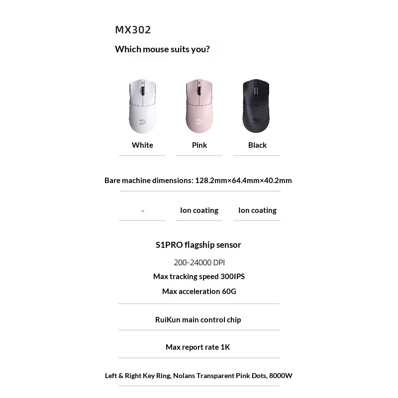MLOONG MX302 무선 블루투스 마우스 트라이 모드 S1 Pro 센서 56g 경량 FPS E-스포츠 게이밍/비즈니스 오피스 마우스