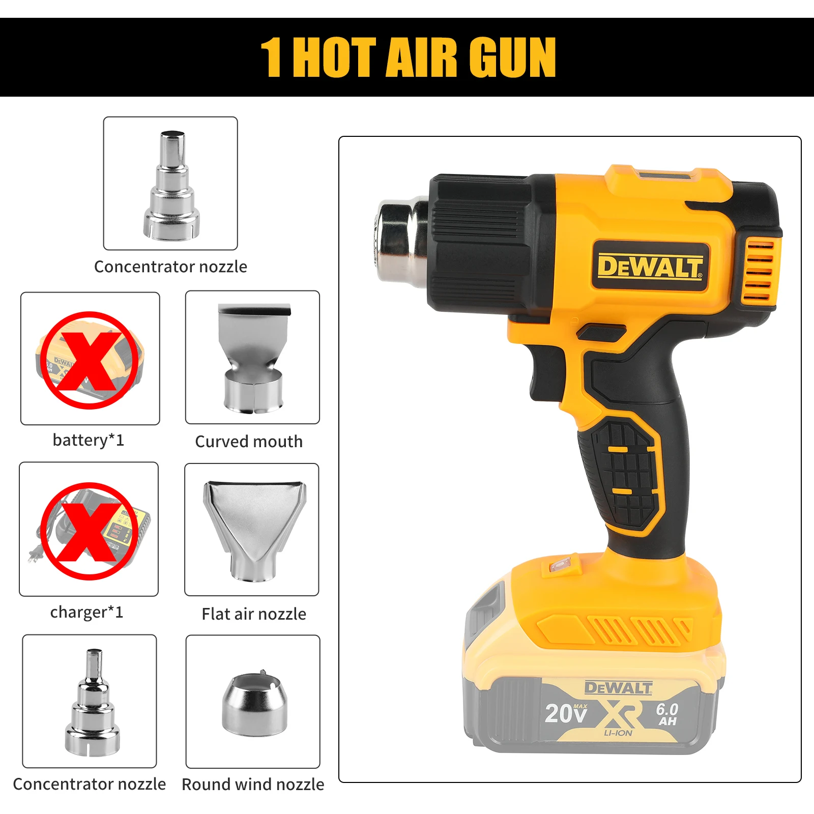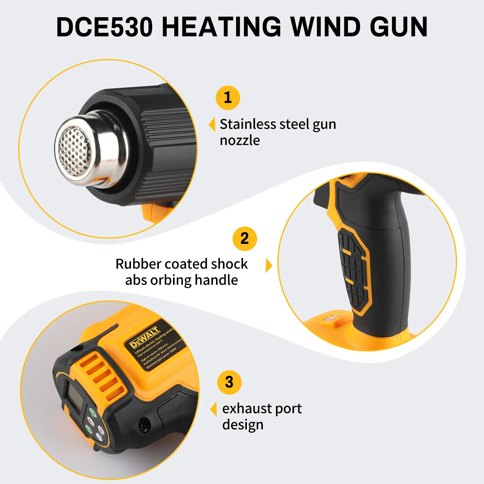 디월트 DCE530 리튬이온 무선 열풍기 18V XR 530 ° C 휴대용 열풍기 파워툴 (본체만) DEWALT