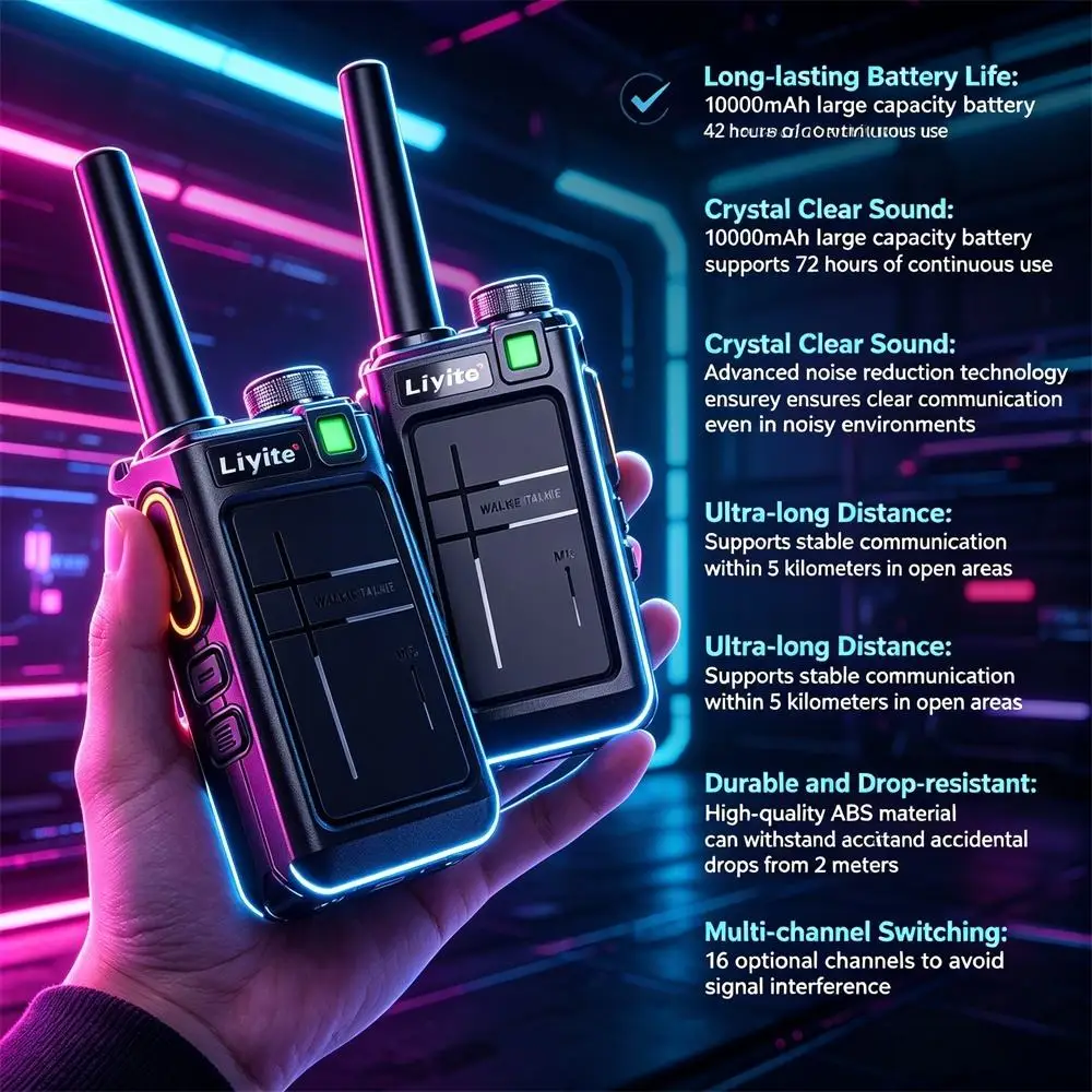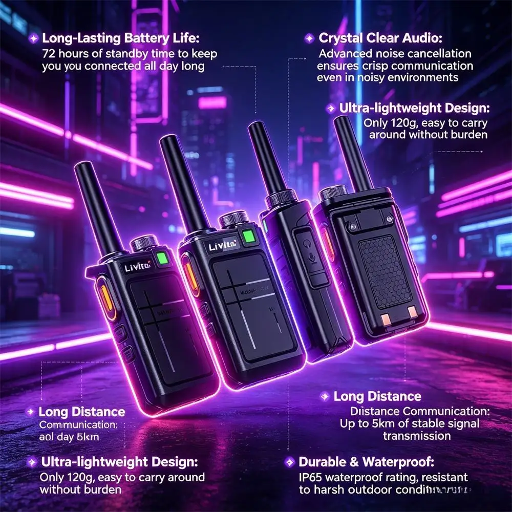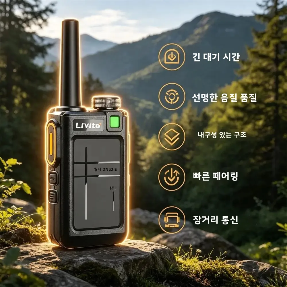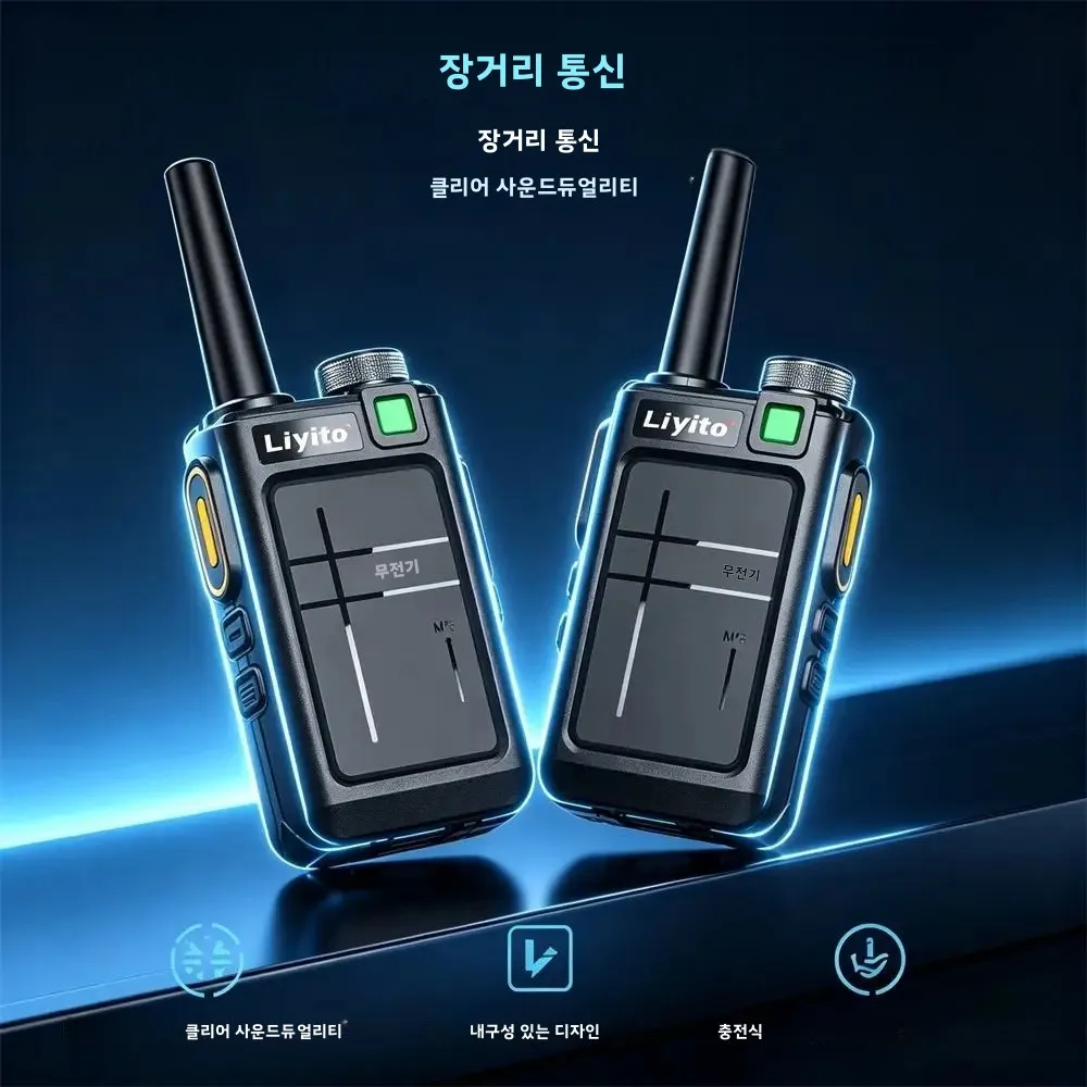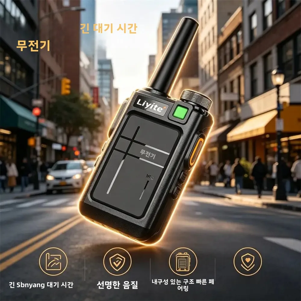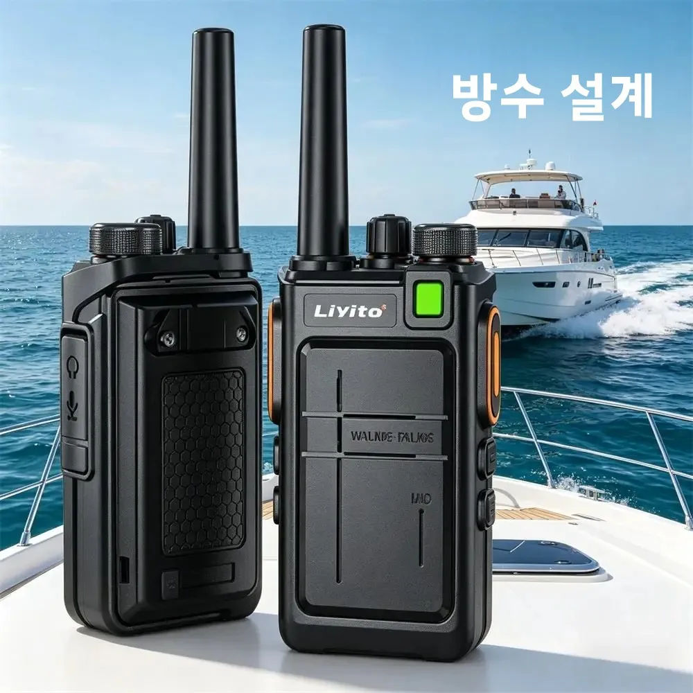 IP55 방수 인증을 받은 이 워키토키는 물과 먼지에 강해 야외 사용에 적합합니다.