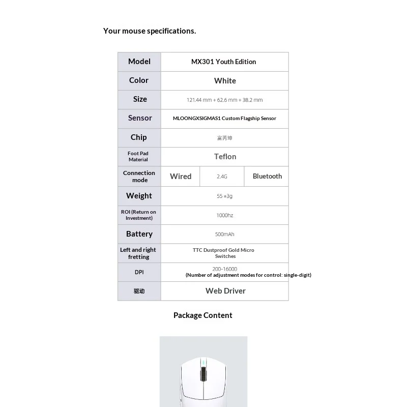 Mloong MX301 Lite 게이밍 마우스 Ofiice 500mAh 3모드 MLOONG S1 전용 센서 TTC 1000HZ 140H 긴 배터리 수명 55g 경량