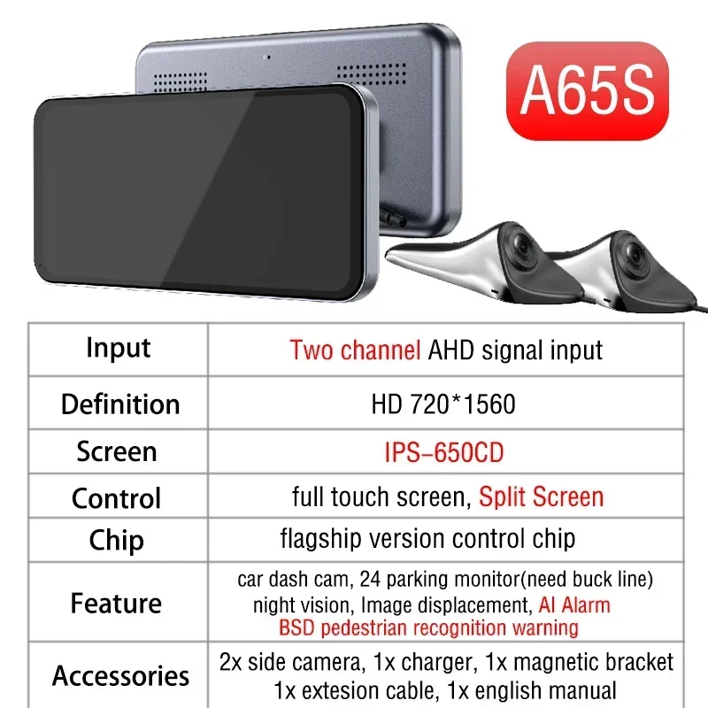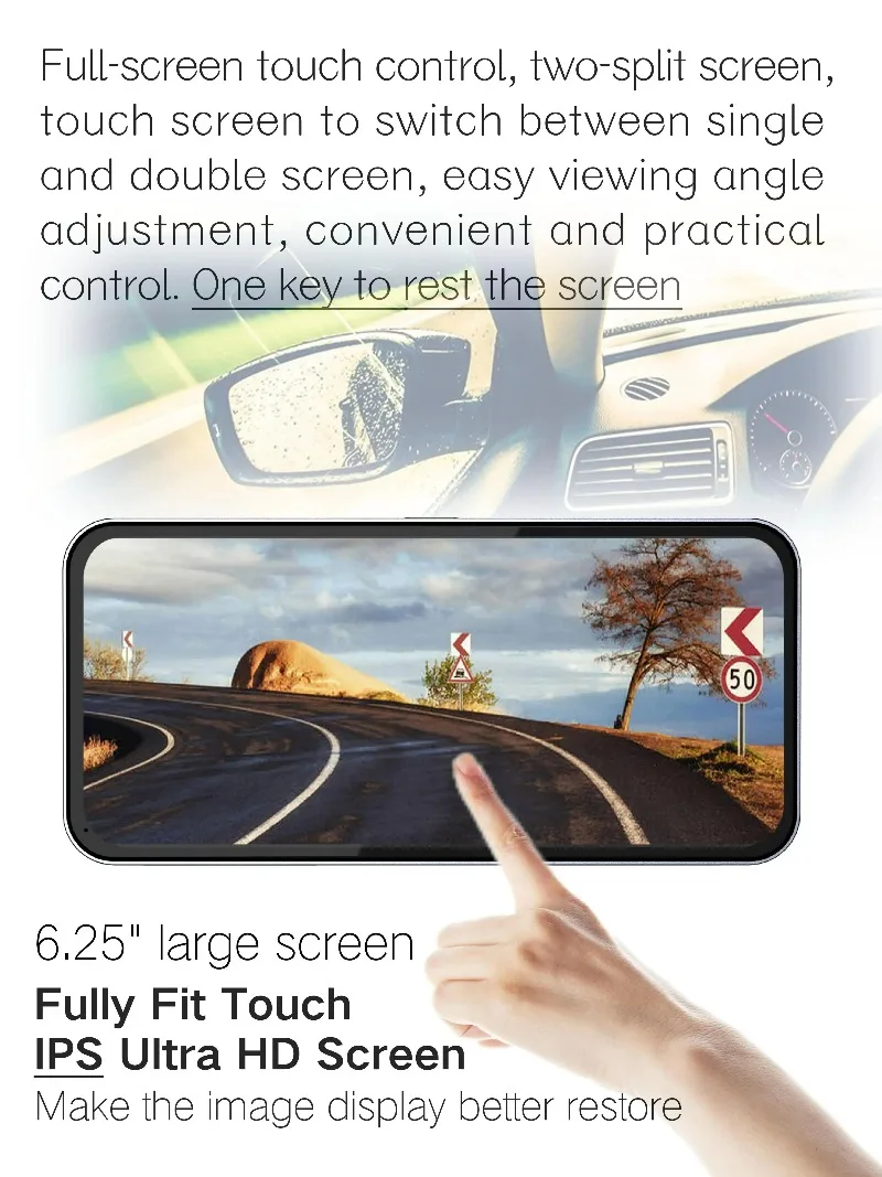 AHD 1080P 6.25인치 후방 거울 사각지대 시스템