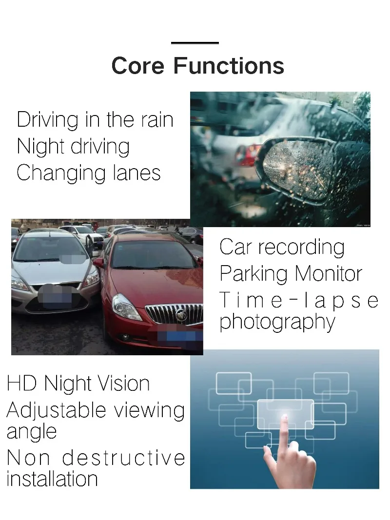 지원 기능: 비디오 재생 ‖ 시계 백라이트 ‖ 루프 녹화 ‖ 타임랩스 모니터링 ‖ 주차 모니터링 ‖ 이미지 미러링 ‖ 날짜 및 시간
