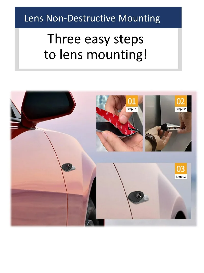 ▶이 측면 카메라 키트는 거의 눈에 띄지 않으며 설치 시 구멍을 뚫을 필요가 없습니다.