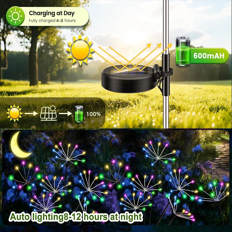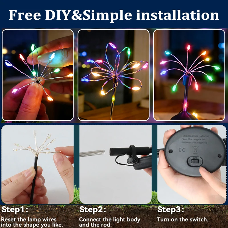 태양광 스파클러 조명 장식: 스파클러 불꽃놀이 스틱은 가볍고 편리하며 조립이 쉽고 크리스마스, 할로윈, 신년 파티, 결혼식 동안 마당, 안뜰, 통로, 산책로, 잔디밭, 뒤뜰 장식에 적합합니다.