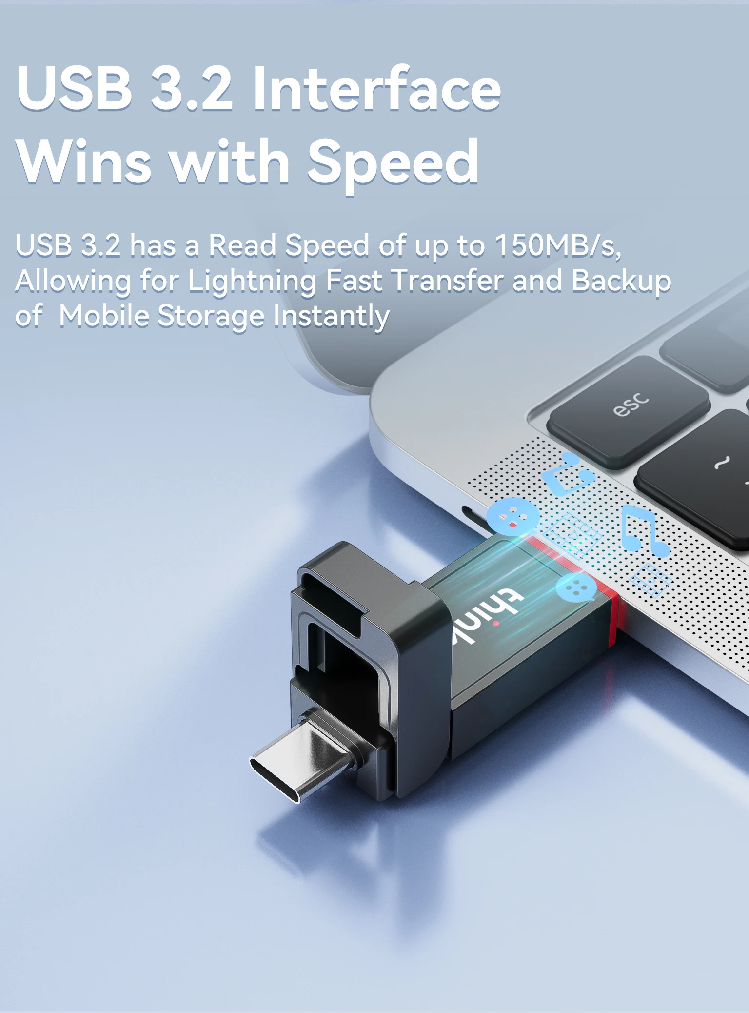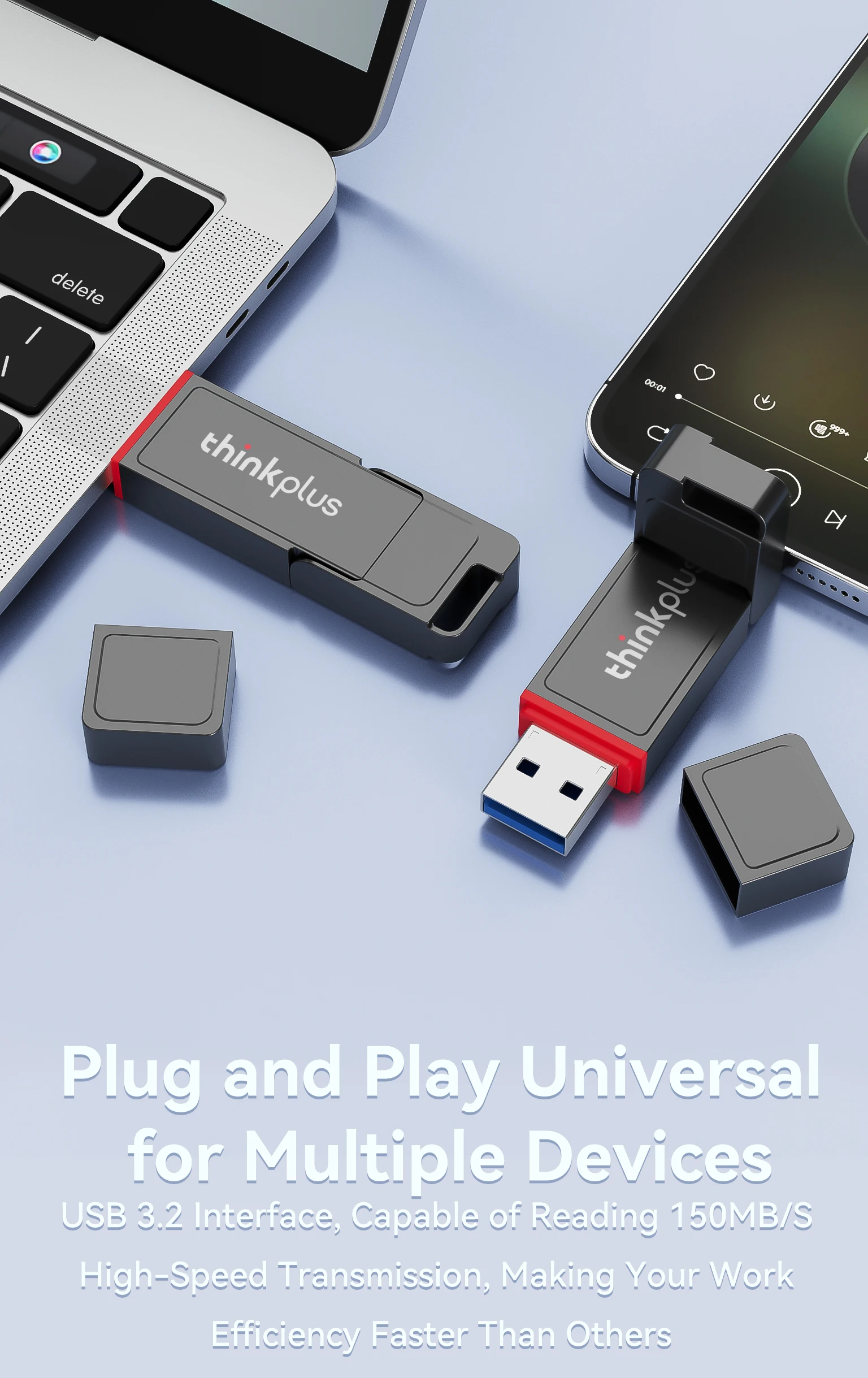 USB 3.2 + Type-C 듀얼 인터페이스, OTG 플러그 앤 플레이.