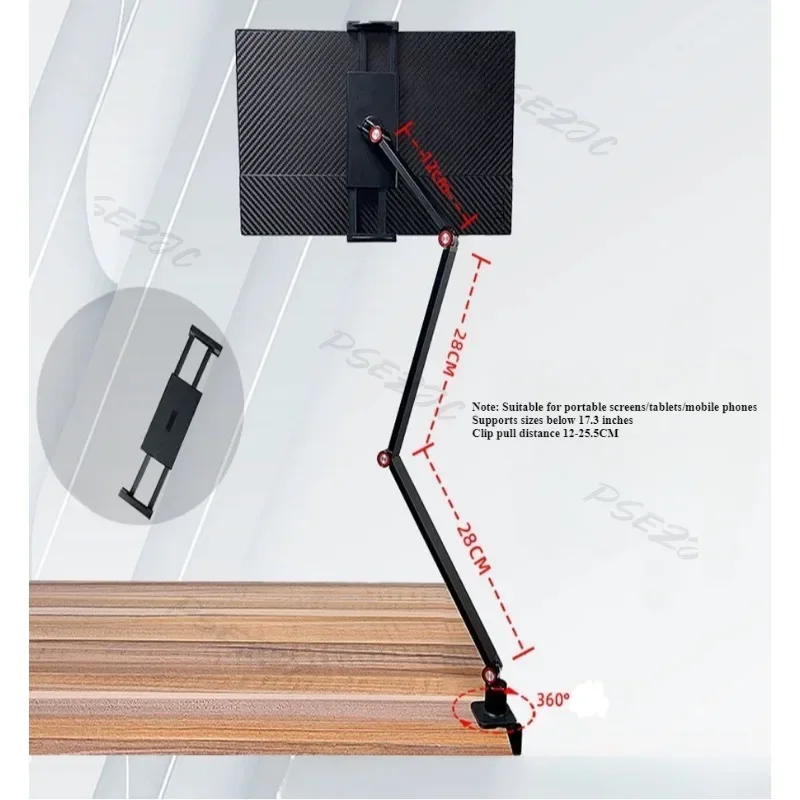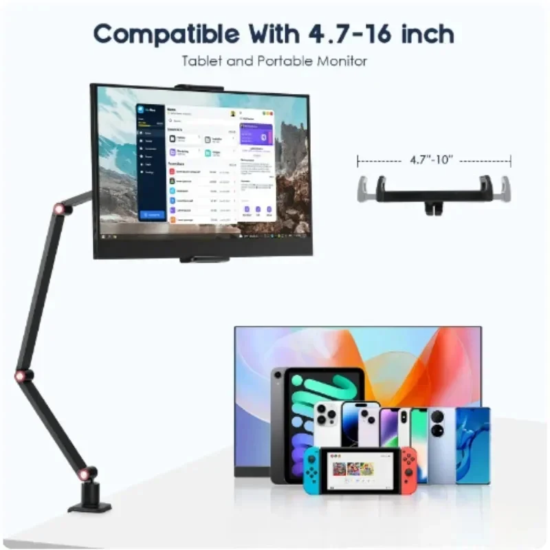 휴대용 VESA 태블릿 거치대 360° 회전 가능한 긴 팔 접이식 게으른 스탠드 16인치 태블릿용 데스크탑 및 침대 옆 사용