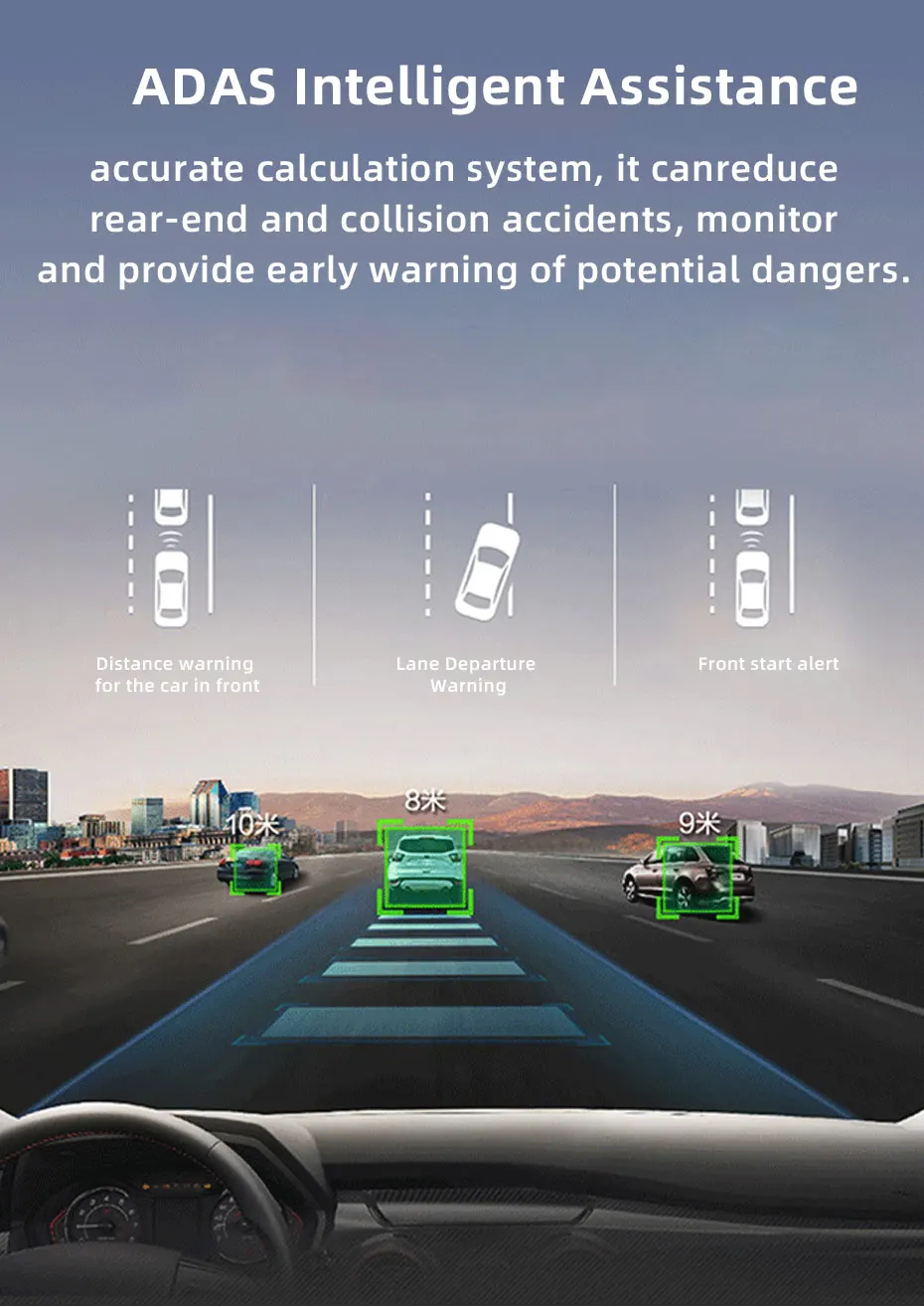 사고는 안전한 추격 거리를 유지함으로써 방지할 수 있습니다. 도로 안전 경고 시스템은 고속도로에서 시속 30km 이상 또는 혼잡한 도시 지역에서 시속 30km 이하로 주행할 때 차량과 앞차 사이의 실시간 거리를 계산하며, 충돌 위험에 따라 운전자에게 영어 음성으로 3단계 조기 경고를 제공합니다.