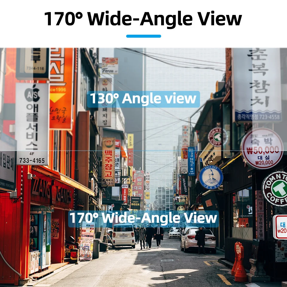 170° 광각을 갖춘 블랙박스는 뛰어난 화질과 더 넓은 시야를 제공합니다.