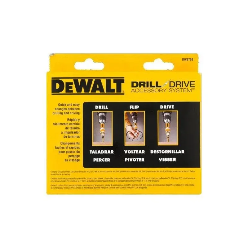 빠른 교체 시스템을 갖춘 DEWALT 드릴 드라이브 세트는 드릴링에서 드라이빙으로의 전환을 순식간에 만들어줍니다. 재료에 구멍을 뚫고 팁을 뒤집어 패스너를 박기만 하면 됩니다.