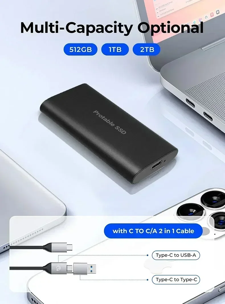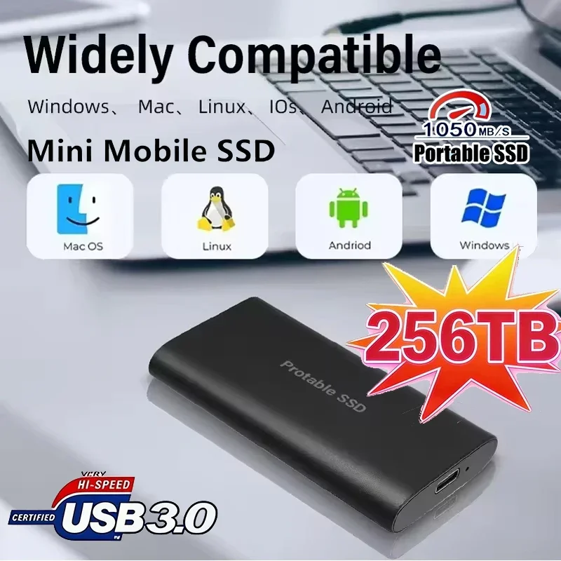 256TB 하드 드라이브 휴대용 2TB 4TB 8TB 솔리드 스테이트 하드 디스크 고속 SSD 대용량 저장 장치 노트북/MAC용