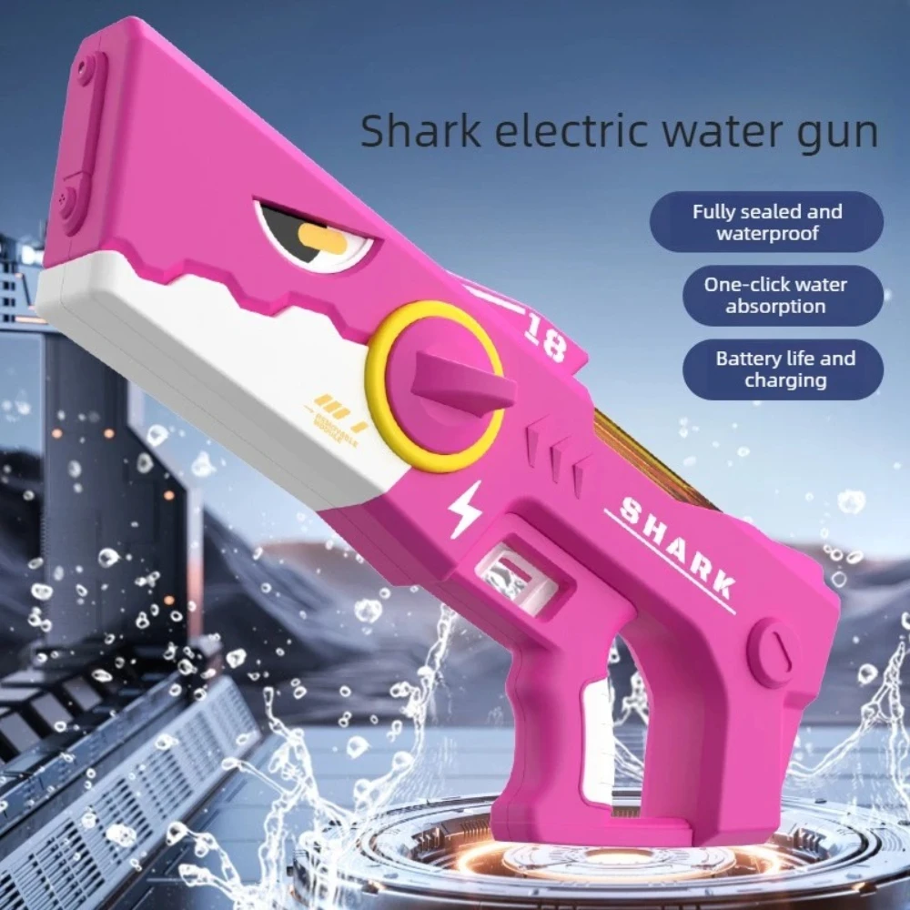 새로운 대용량 상어 전동 물총 완전 자동 다중 발사 자가 충전 물총 어린이 야외 장난감