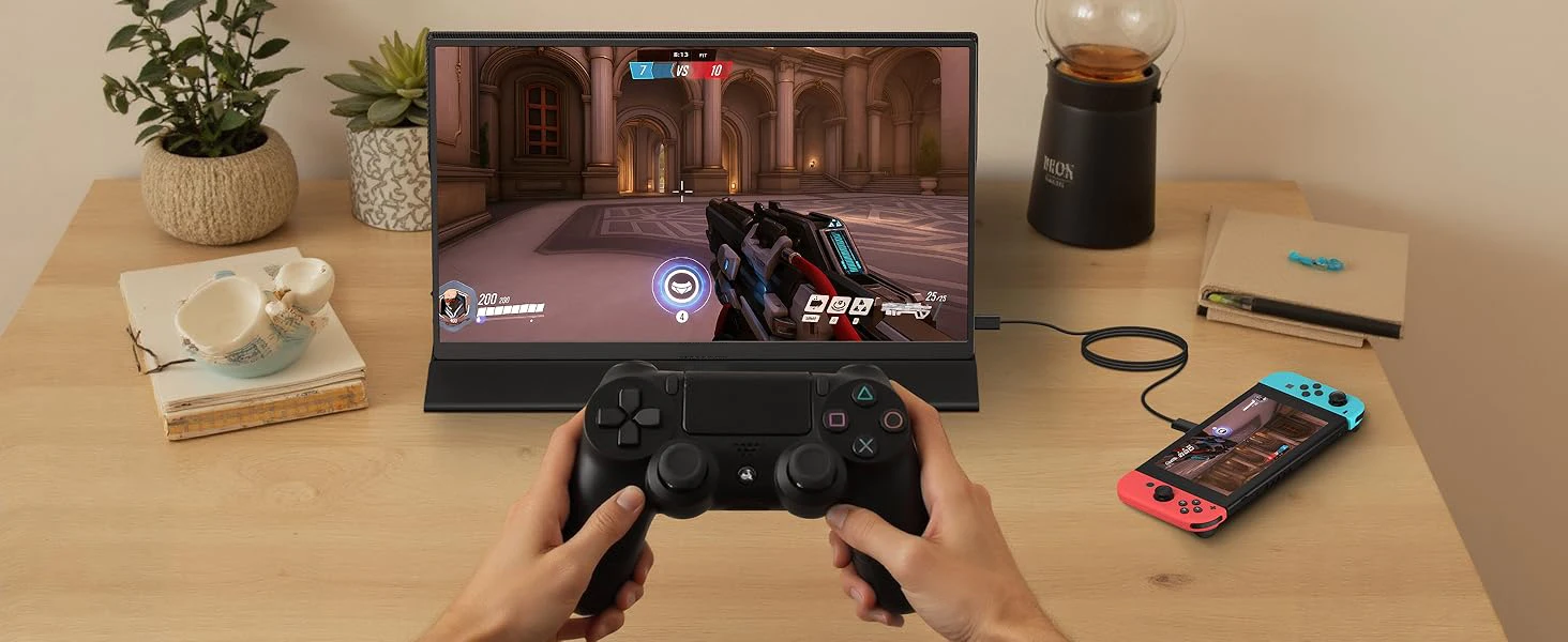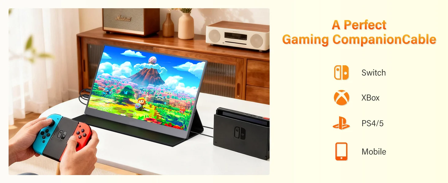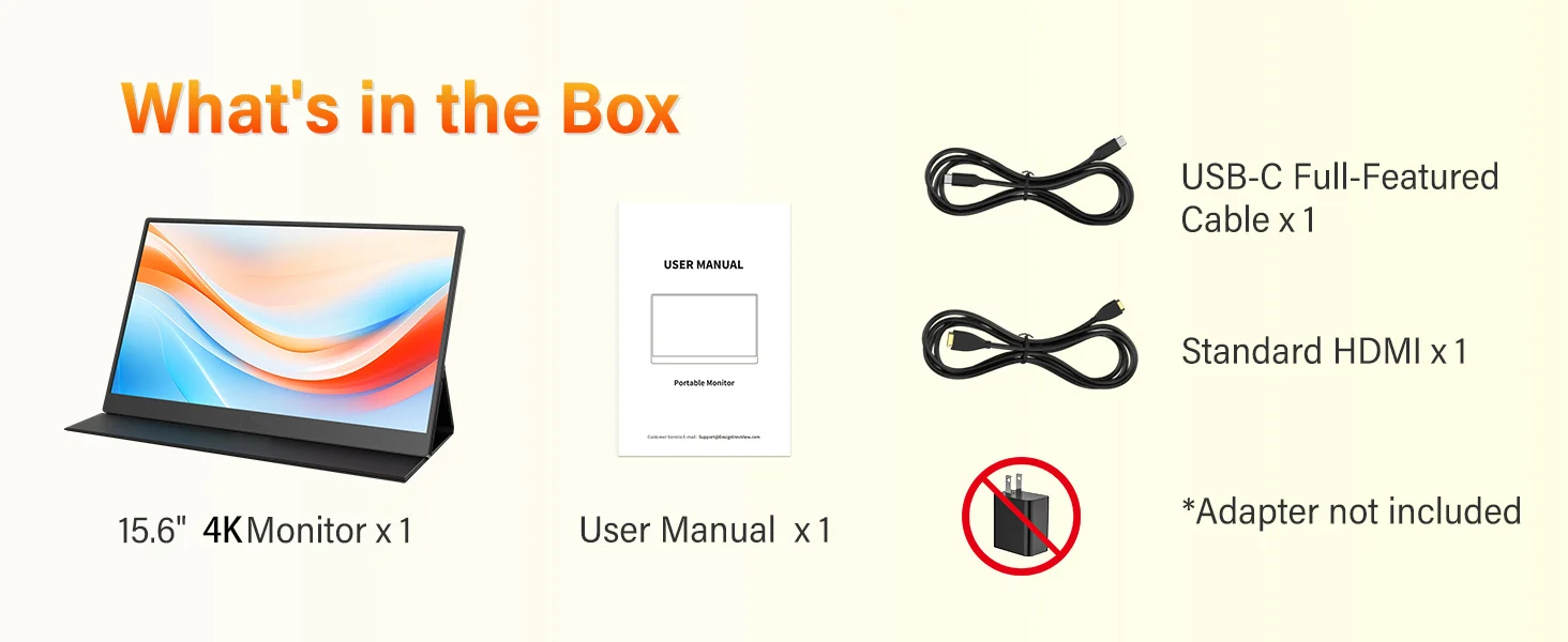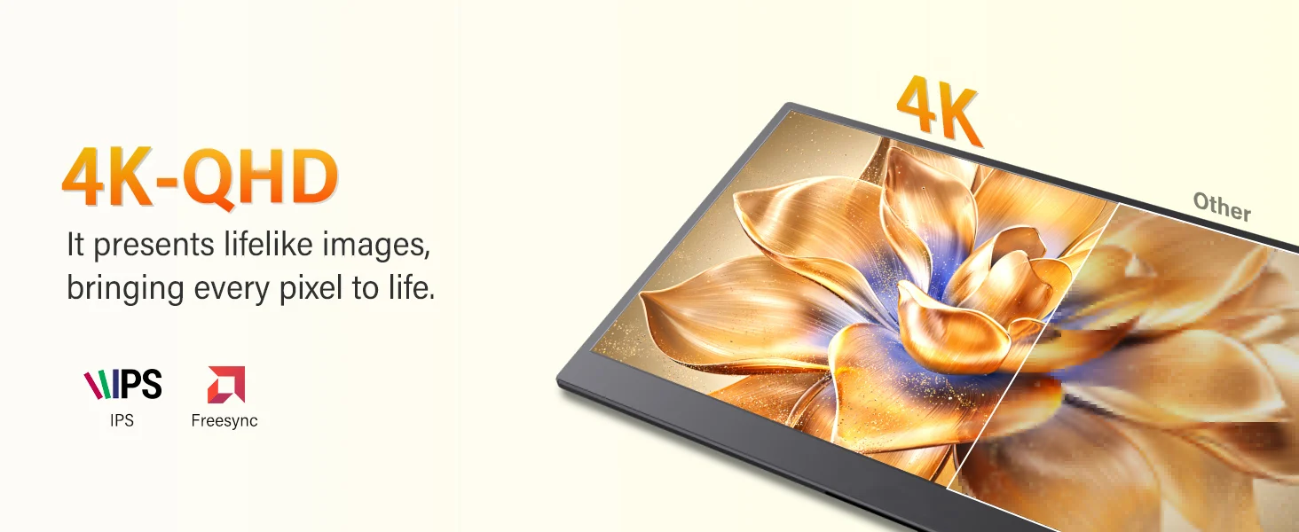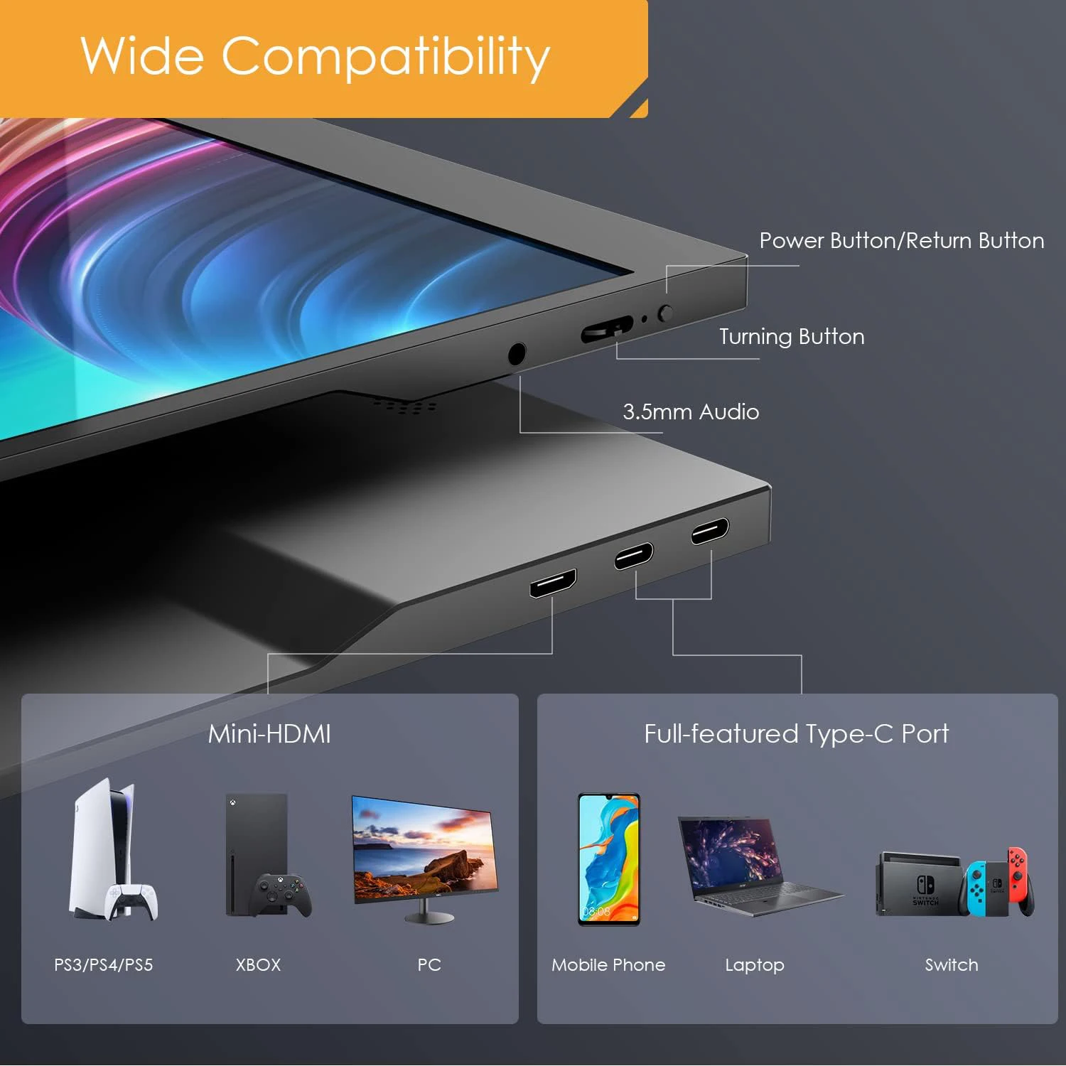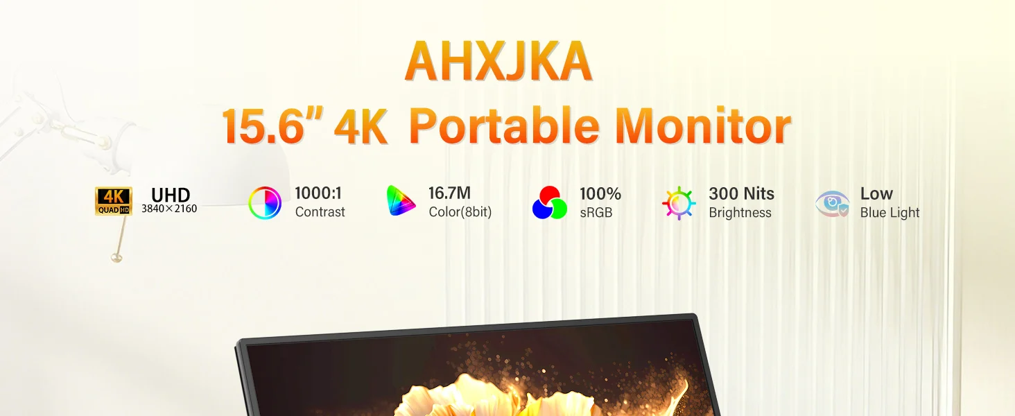 AHXJKA 15.6" 4K 화면 휴대용 모니터 IPS 3840*2160 100%sRGB 300Cd/m² 여행용 디스플레이 PS4/5 TV 노트북 컴퓨터 휴대폰 게이밍용