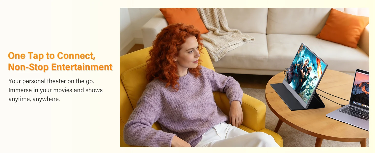 USB-C 연결: 노트북에서 직접 전원을 공급받는 "원케이블 솔루션"(전원 + 신호)을 지원합니다.