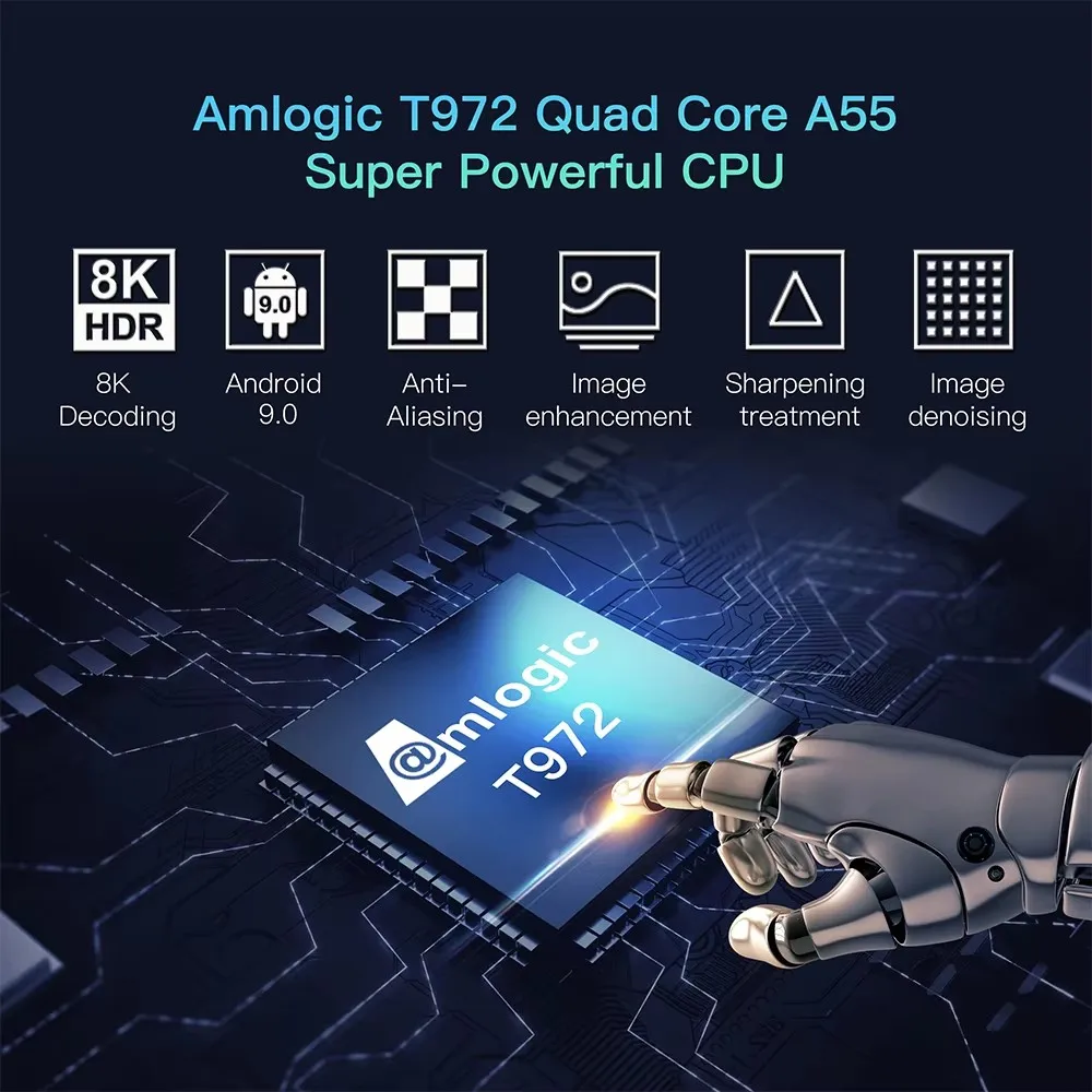 -CPU Amlogic T972 쿼드 코어 ARM Cortex-A55