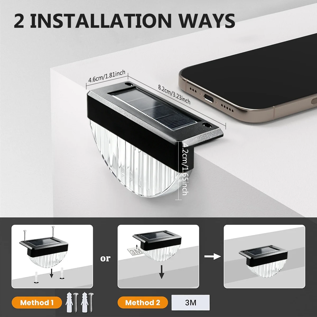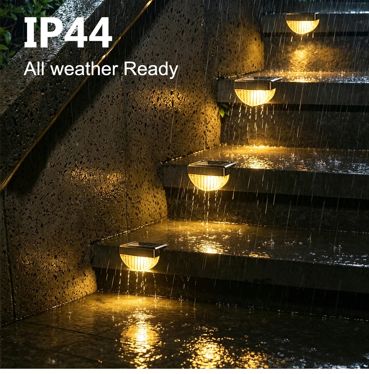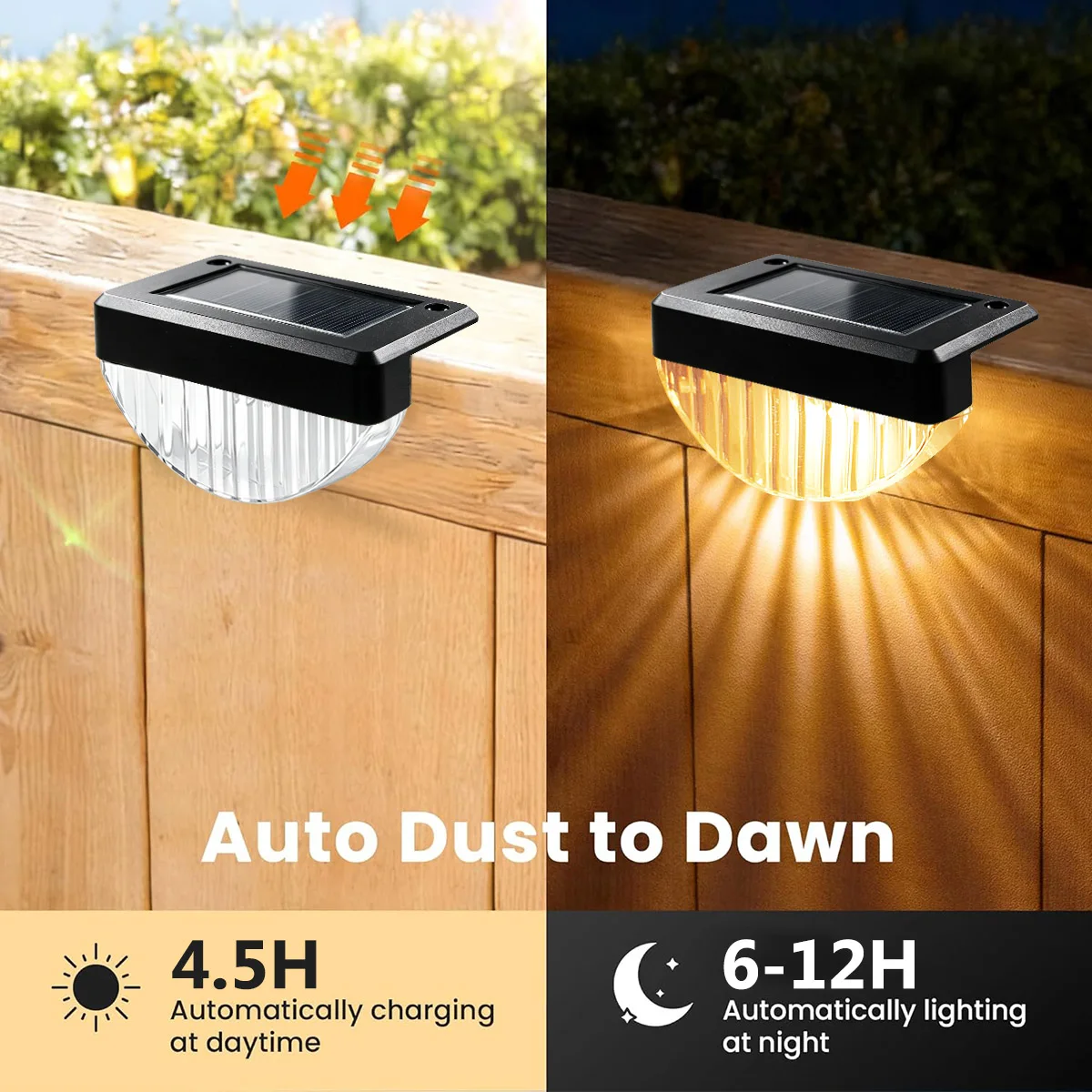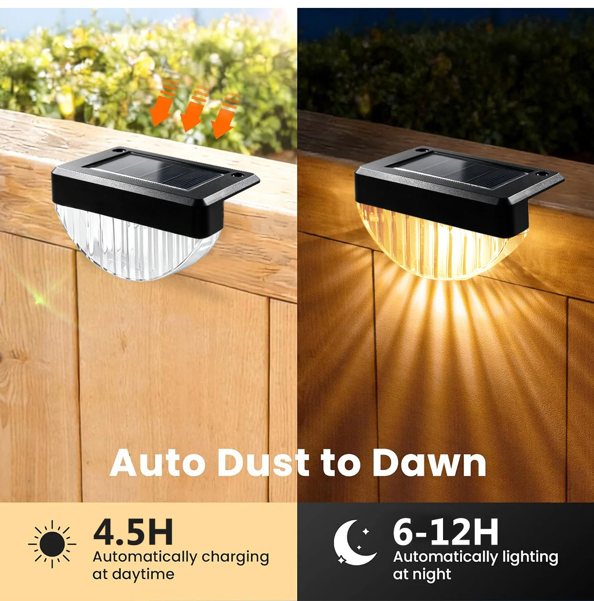 【자동 ON/OFF】-- 태양광 계단등은 더 효율적인 태양광 패널과 최대 21%의 높은 전환율을 갖추고 있습니다. 실외 태양광 계단등은 4-6시간 충전 후 8-12시간 동안 빛을 밝힐 수 있습니다. 설치가 완료되면 해질녘에 자동으로 켜지고 새벽에 꺼집니다.