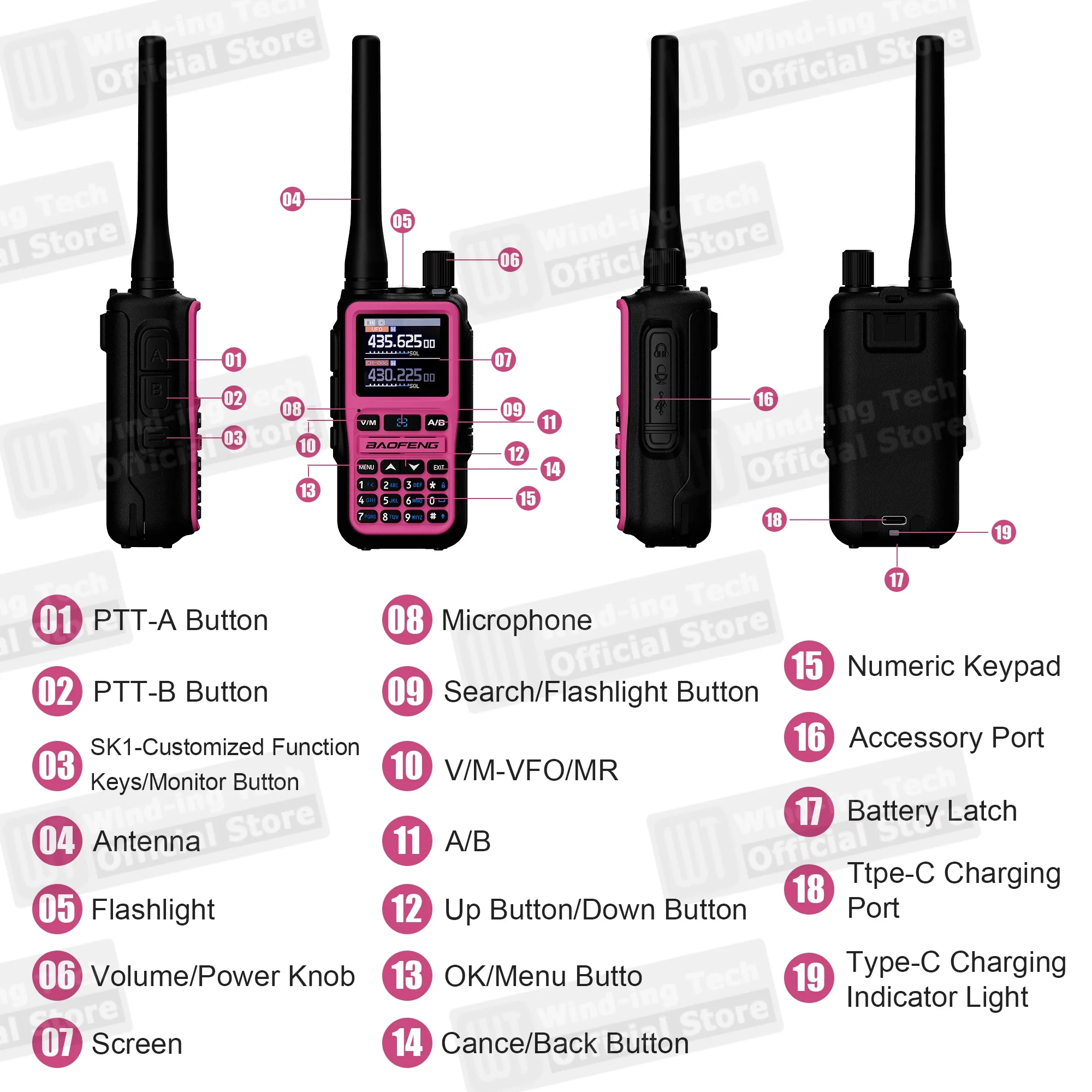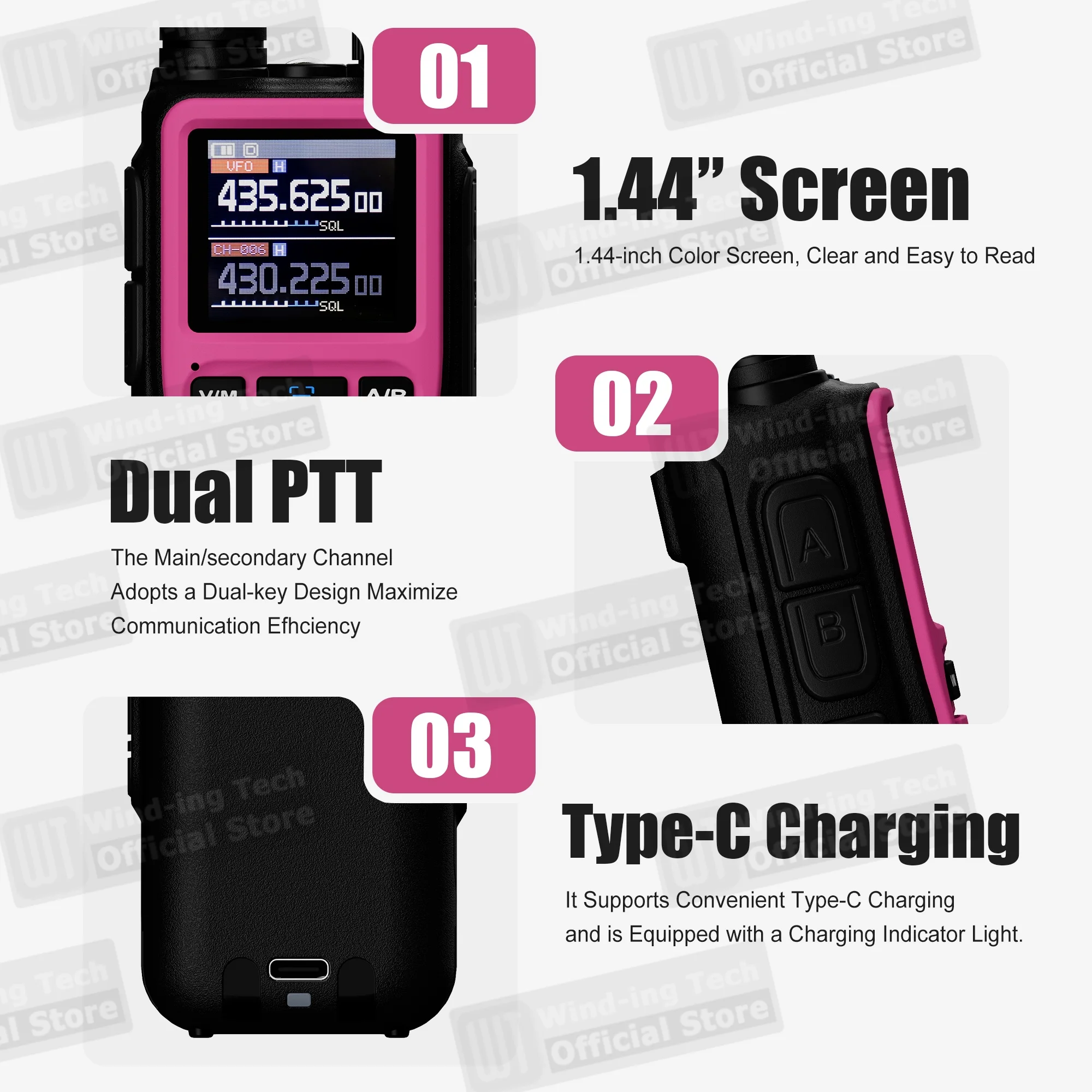 1.44" TFT 대형 화면, 풀 키보드, 풀 오픈 메뉴 조작, 로컬 채널 저장 및 삭제