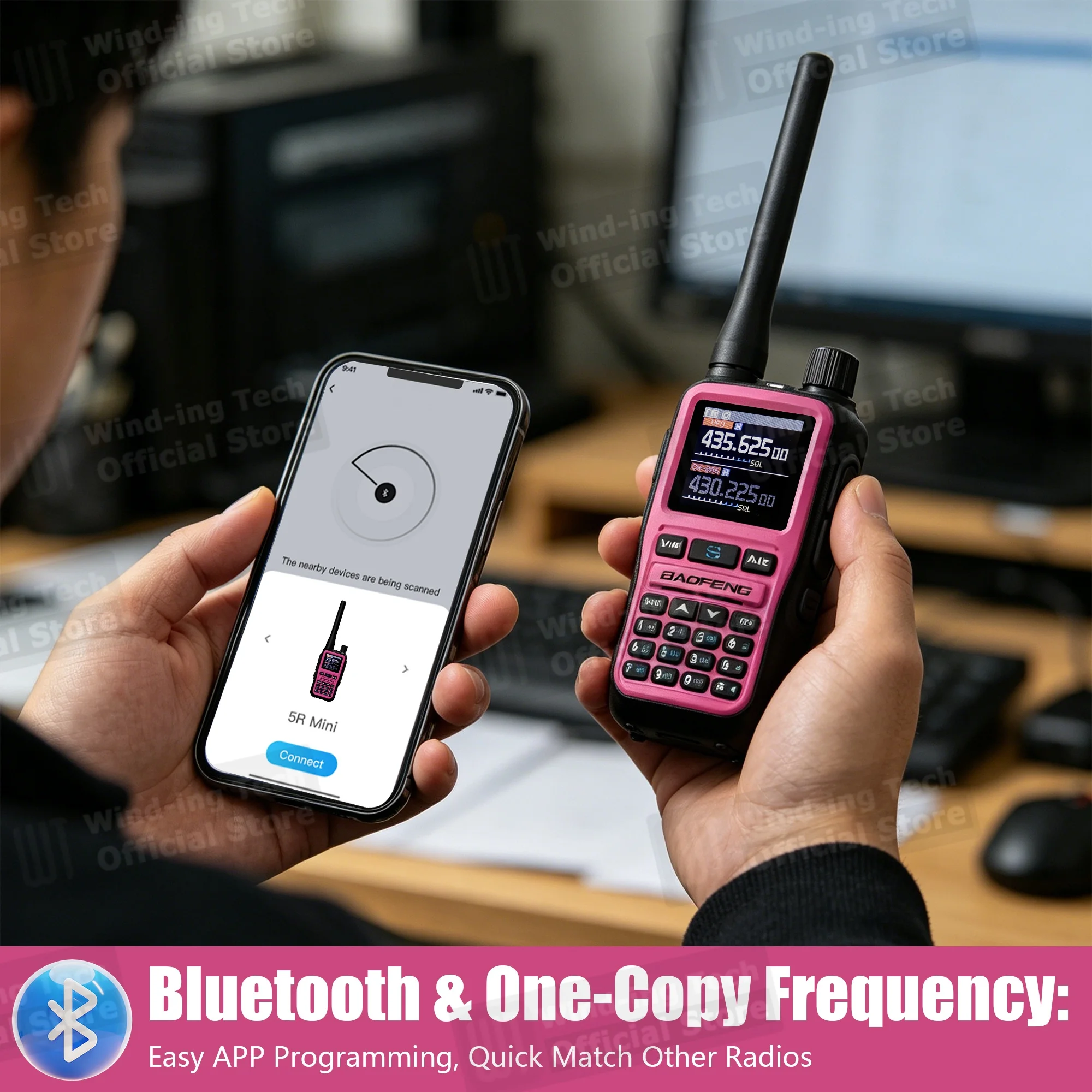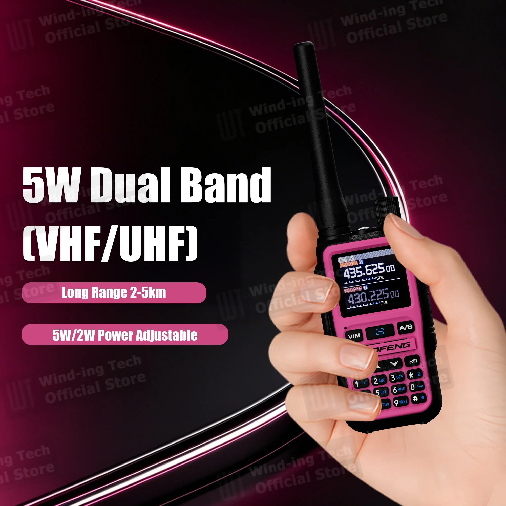 2x 핑크 UV-5R 미니 라디오