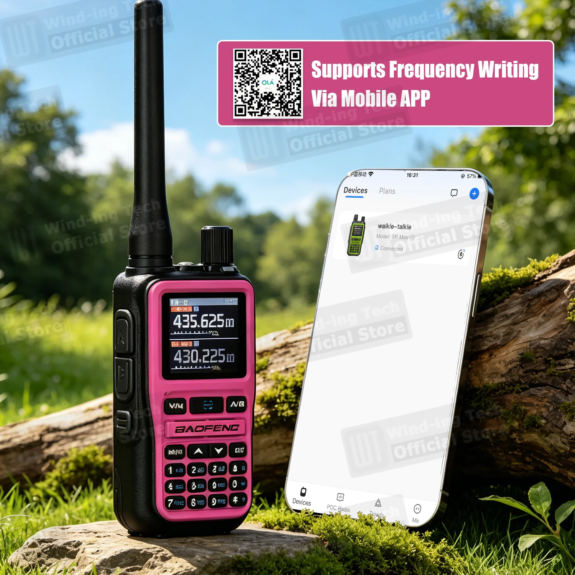 1x 핑크 UV-5R 미니 라디오