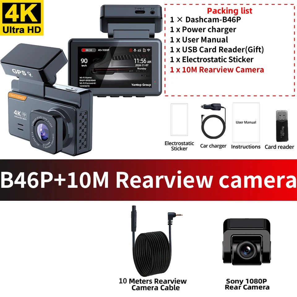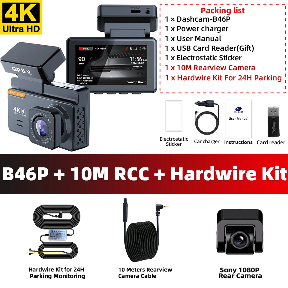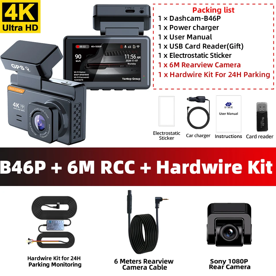 ➤ 후방 카메라 업그레이드: 최대 10미터 케이블 지원 후방 카메라 ➤ 추가 기능: 야간 투시, 3840x2160P 전방 카메라, 4K 비디오 해상도, WiFi, 내장 GPS 추적