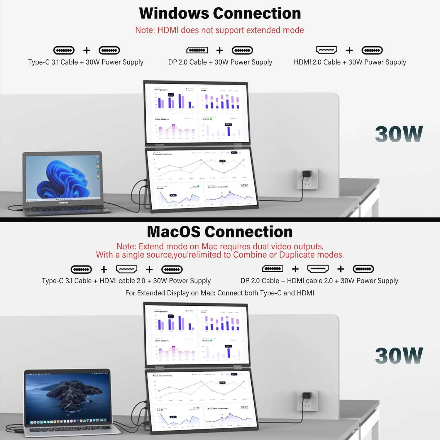 AHXJKA 듀얼 스택 15.6" 접이식 모니터