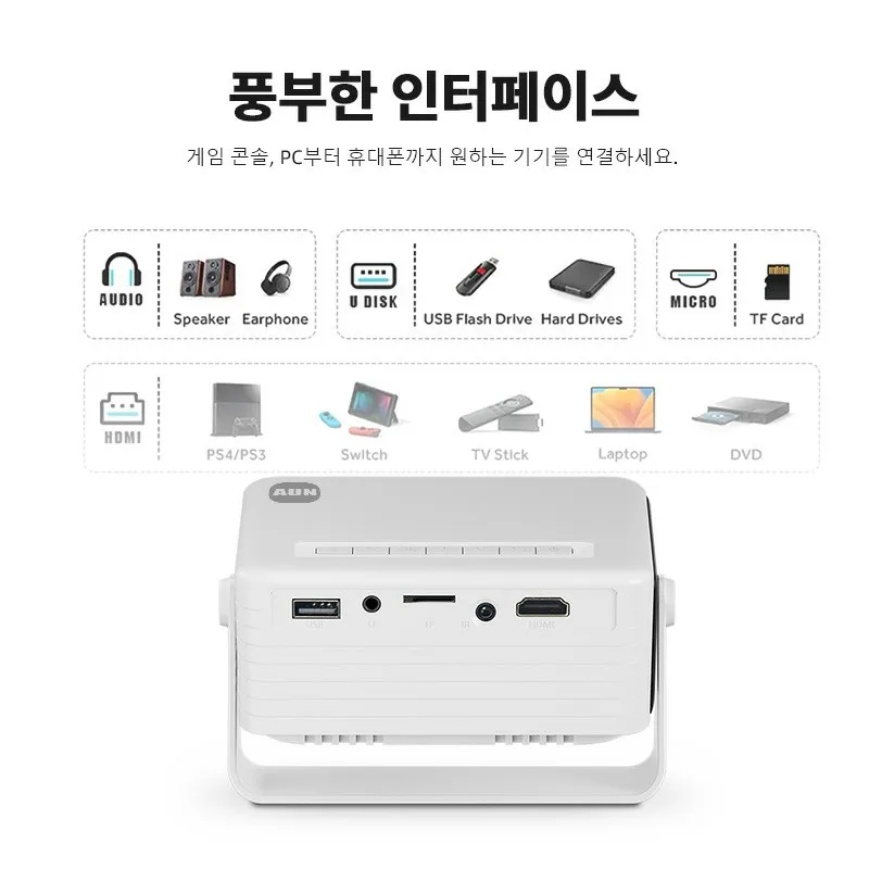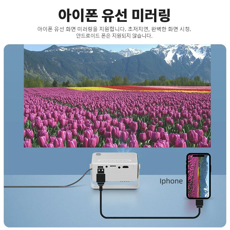 풀 HD 1080P, 네이티브 720P 해상도 지원, 선명하고 생생한 이미지로 최대 120인치까지 투사합니다.