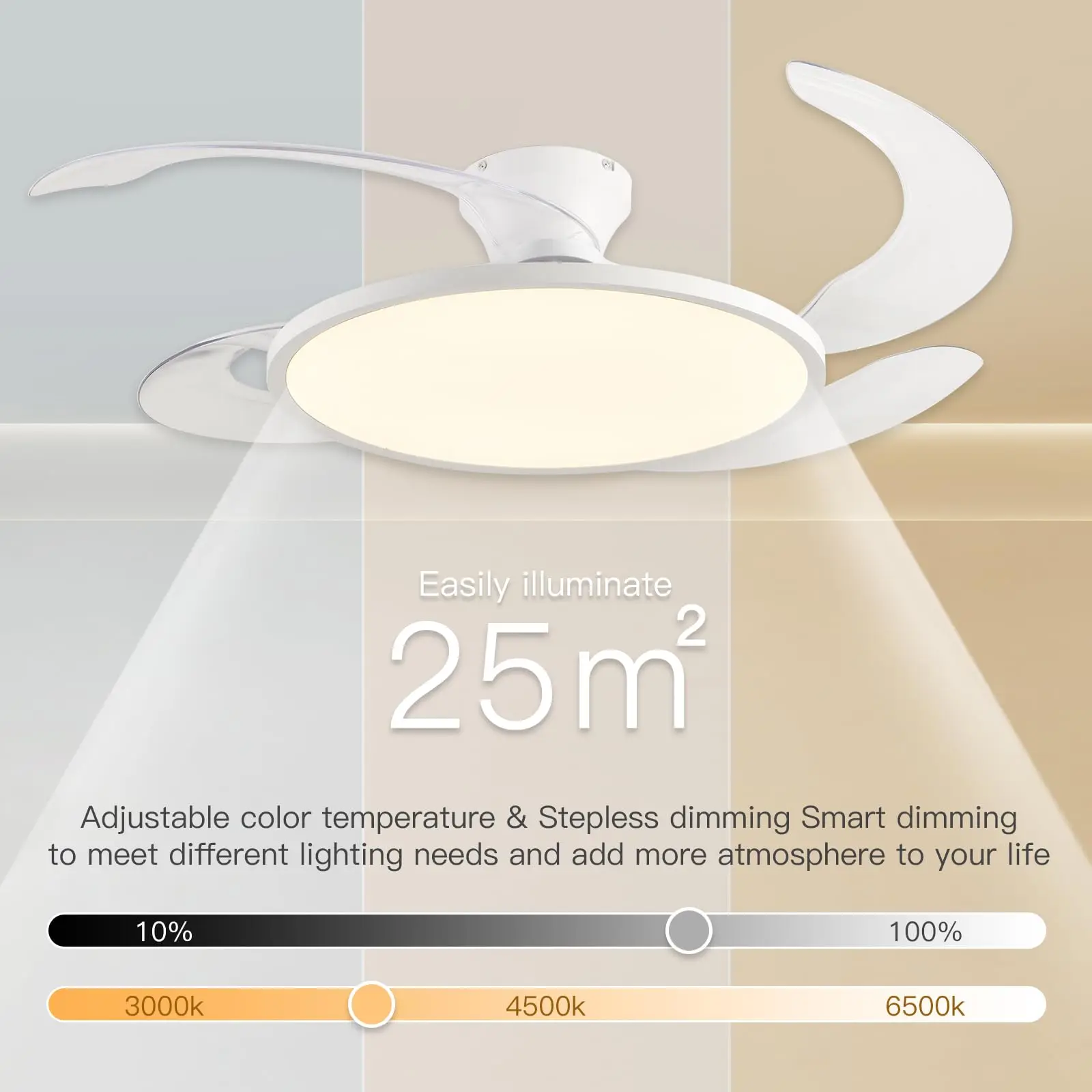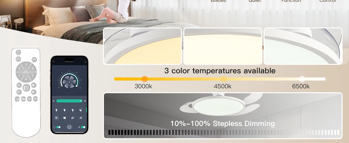 이 현대적이고 심플한 팬 조명은 침실, 거실, 식당, 서재, 주방, 심지어 발코니와 같은 다양한 공간을 다목적으로 쉽게 제어할 수 있습니다. 고품질 LED 광원이 장착되어 있어 색온도를 자유롭게 조절할 수 있으며, 적절한 빛과 그림자 분위기를 연출합니다. 조용한 모터는 안전하고 무독성인 ABS 팬 블레이드와 결합되어 조용하고 안정적으로 작동하며, 온 가족의 편안한 시간을 보호합니다.